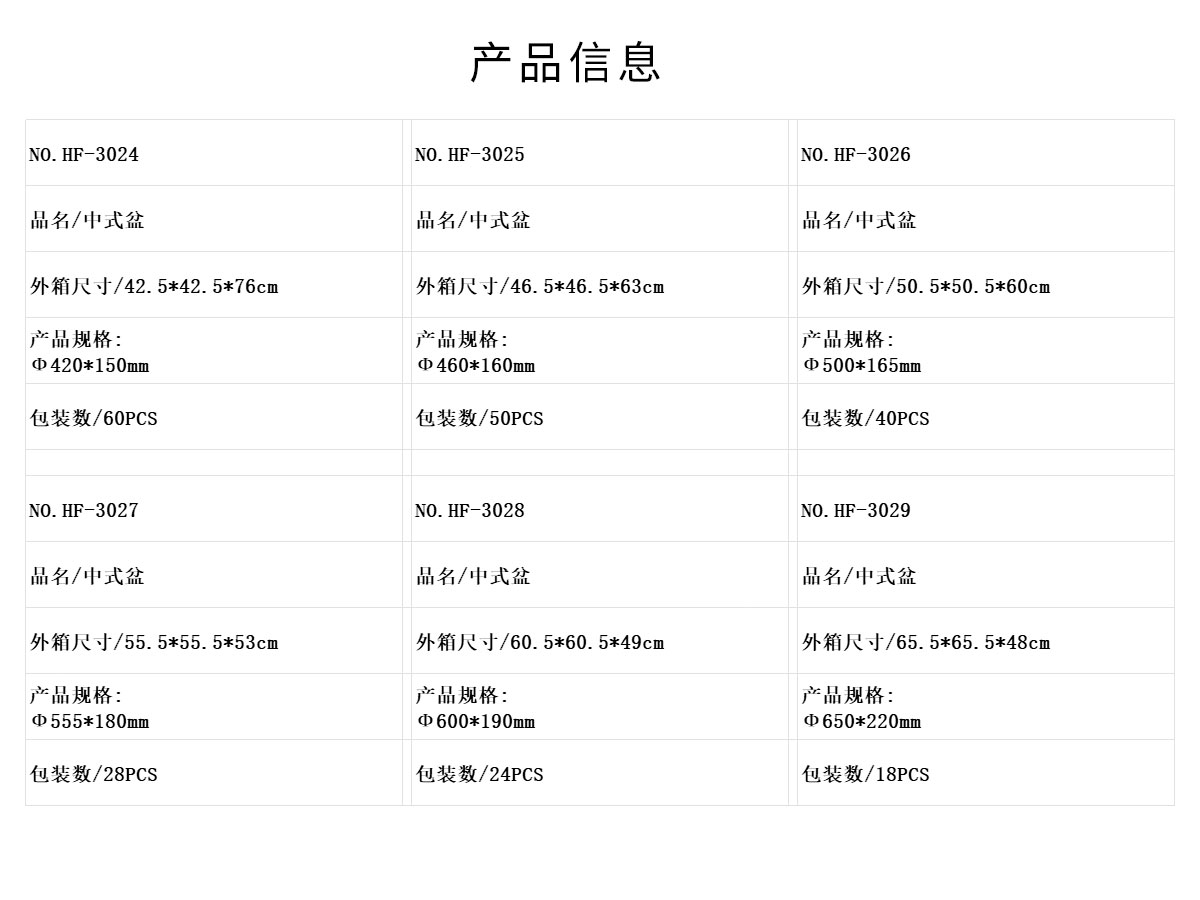 HF-3028:Φ600*190mm/HF-3029:Φ650*220mm