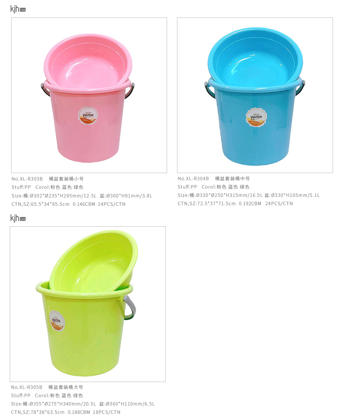 XL-R304B(中號(hào)):桶:?330*?250*H315mm/16.5L 盆:?330*H105mm/5.1L