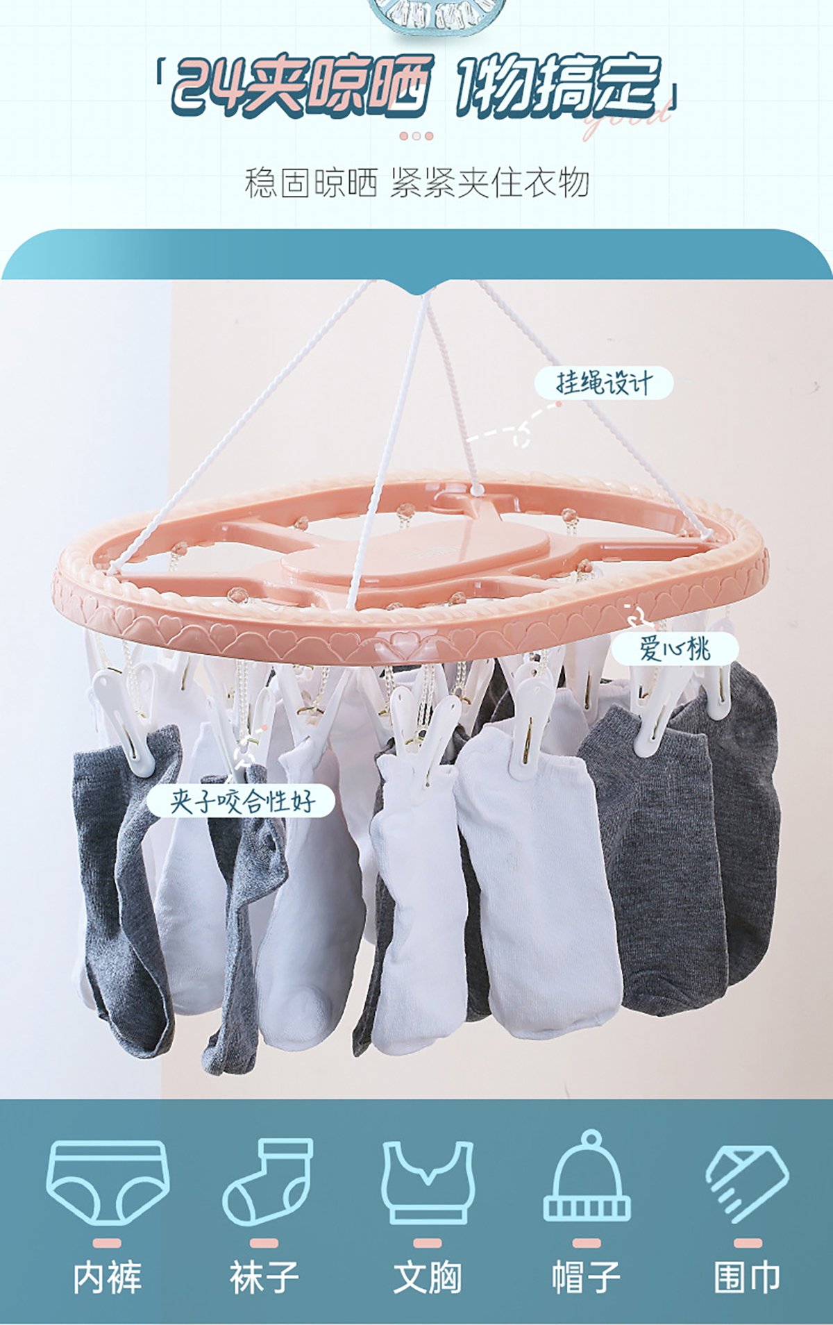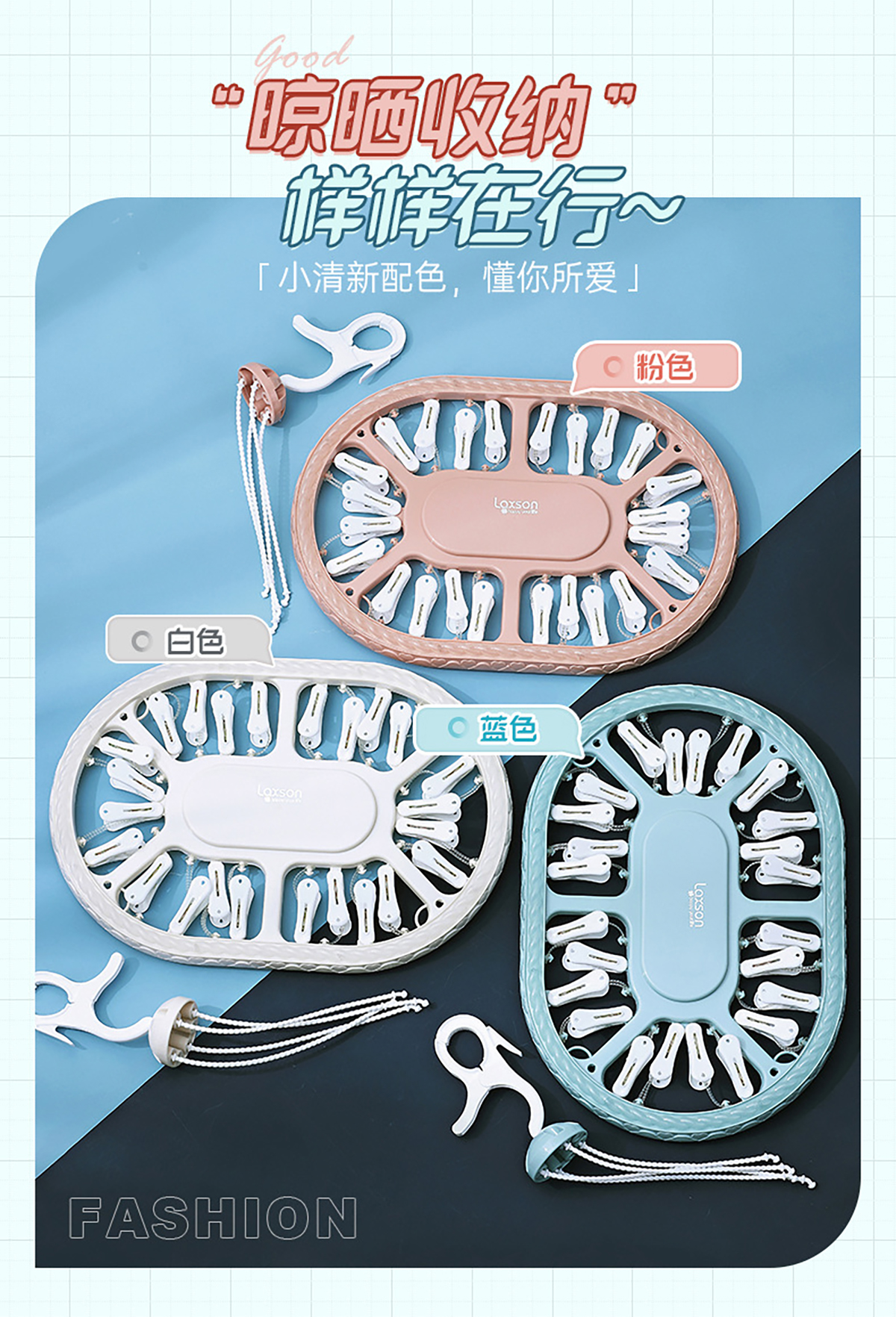 雙色長(zhǎng)圓形24夾曬架 2023年新色