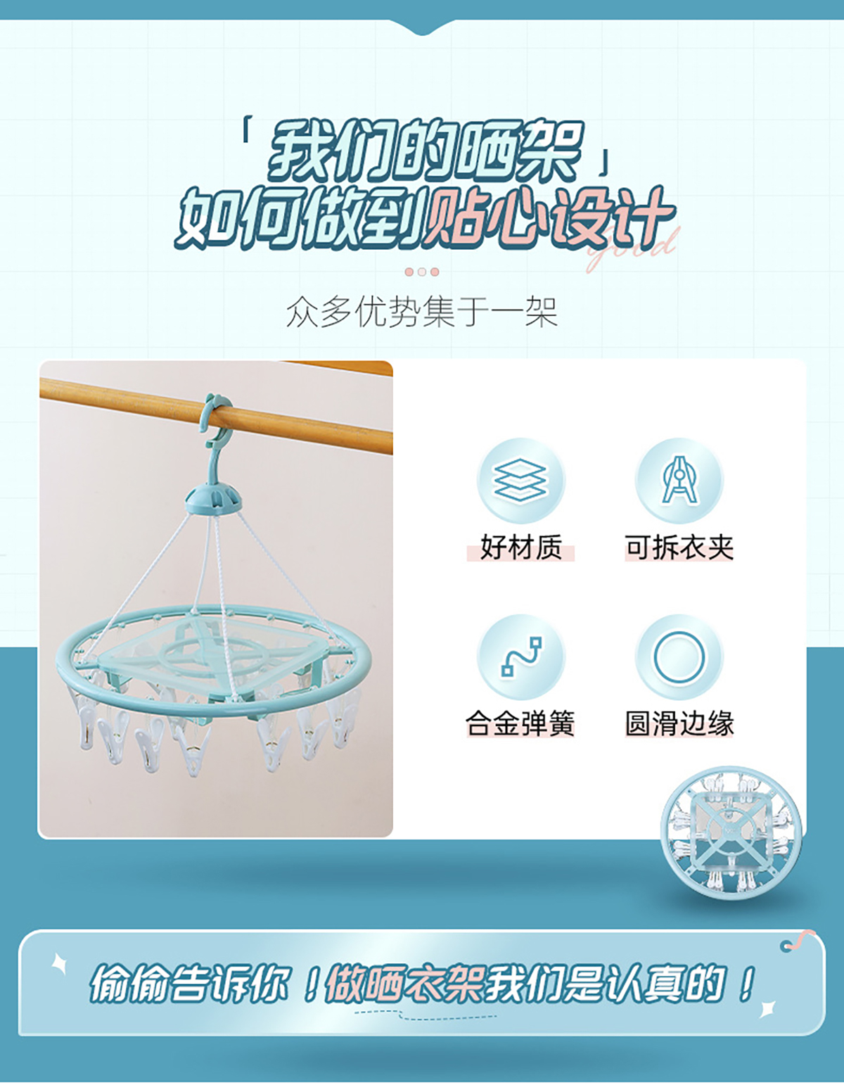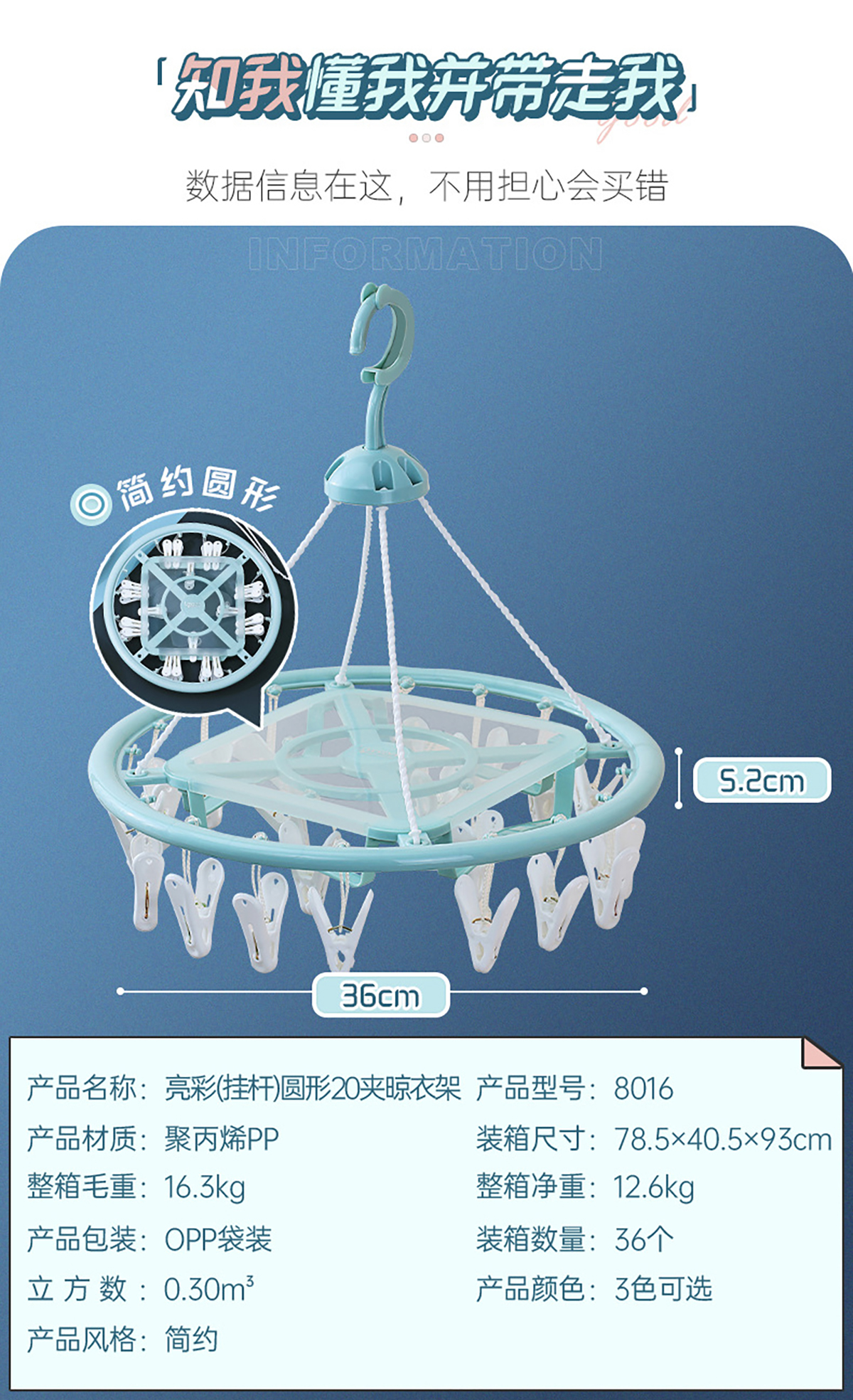 亮彩(掛桿)圓形20夾晾衣架 2023年新色