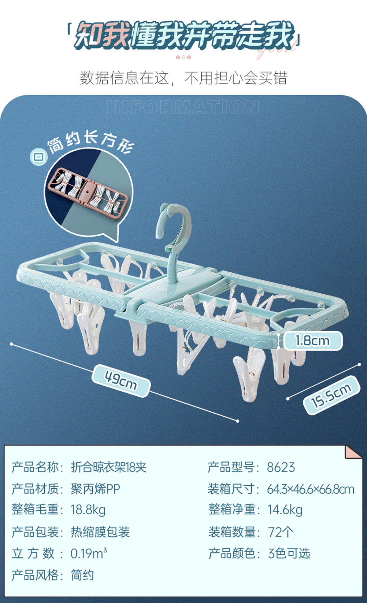 折合晾衣架18夾  2023年新色
