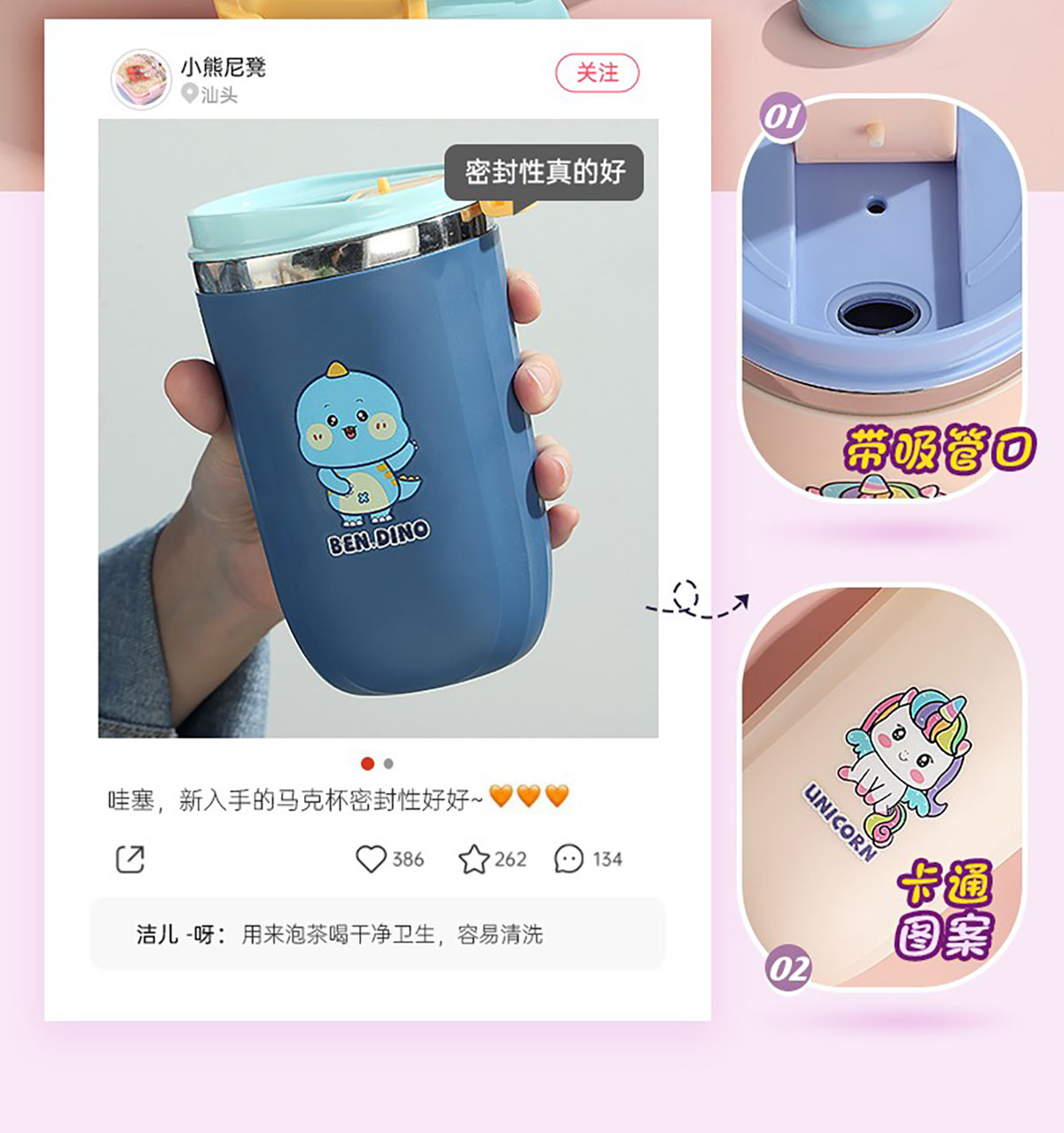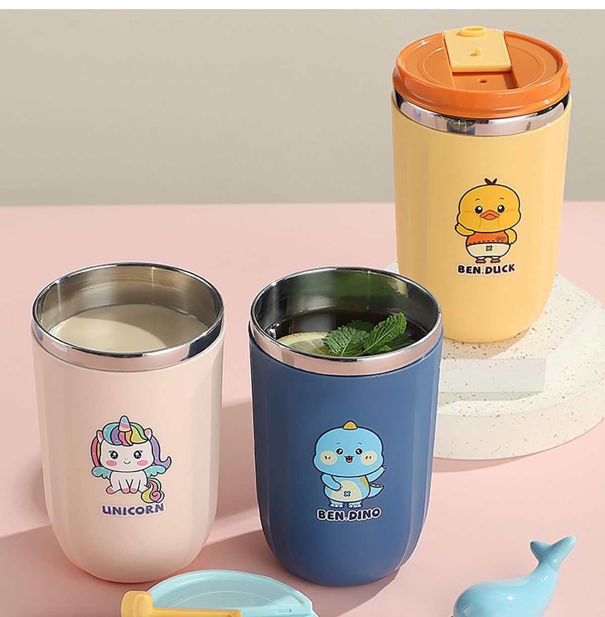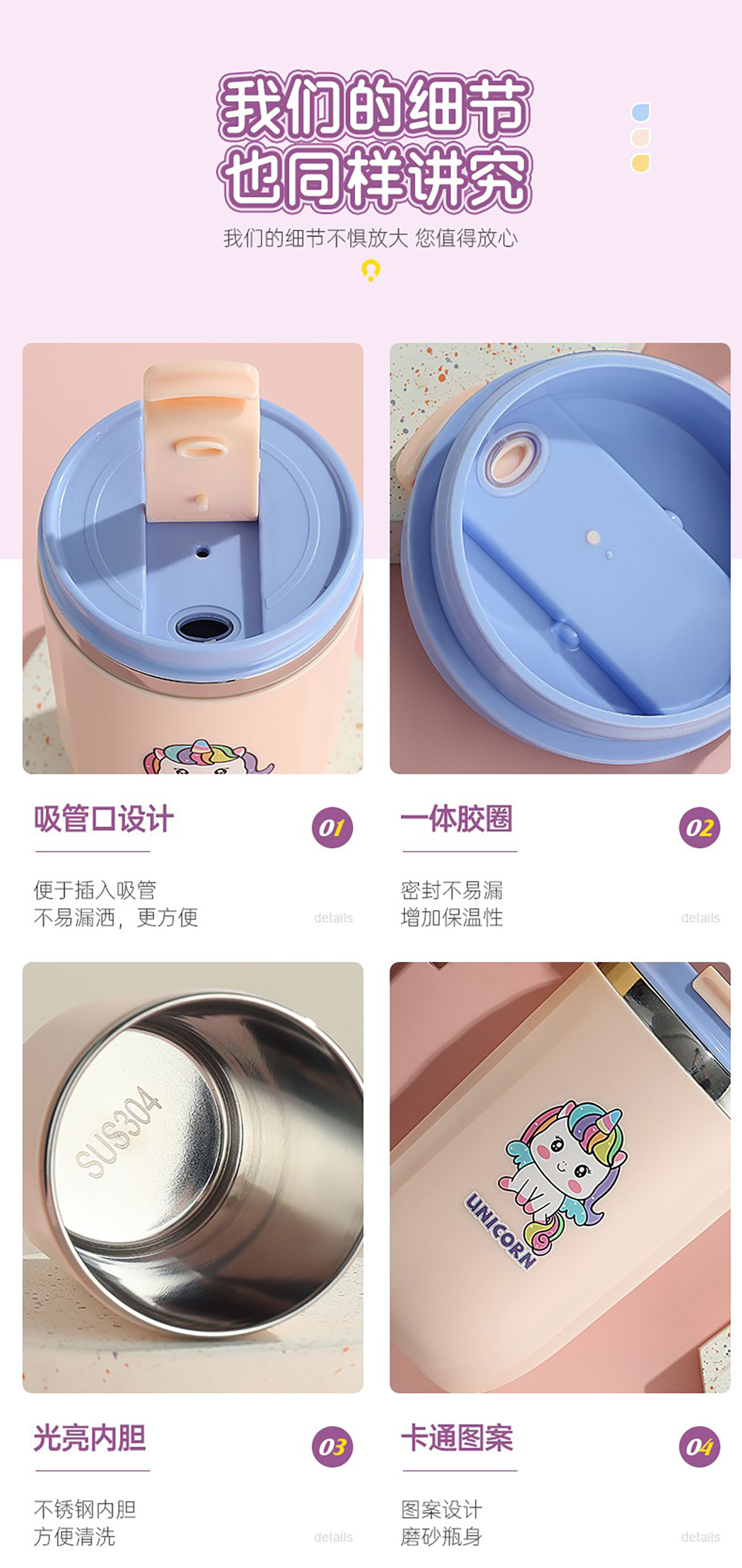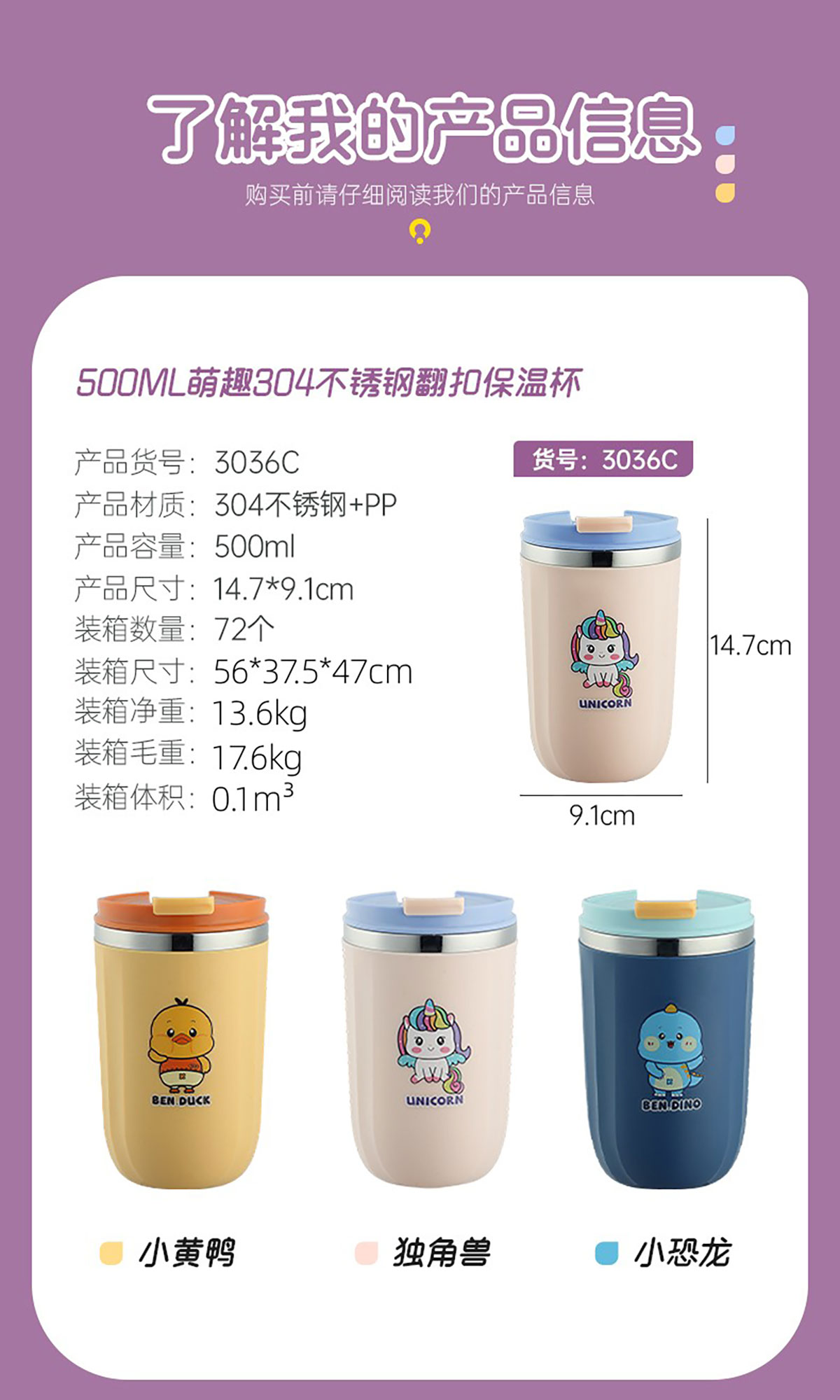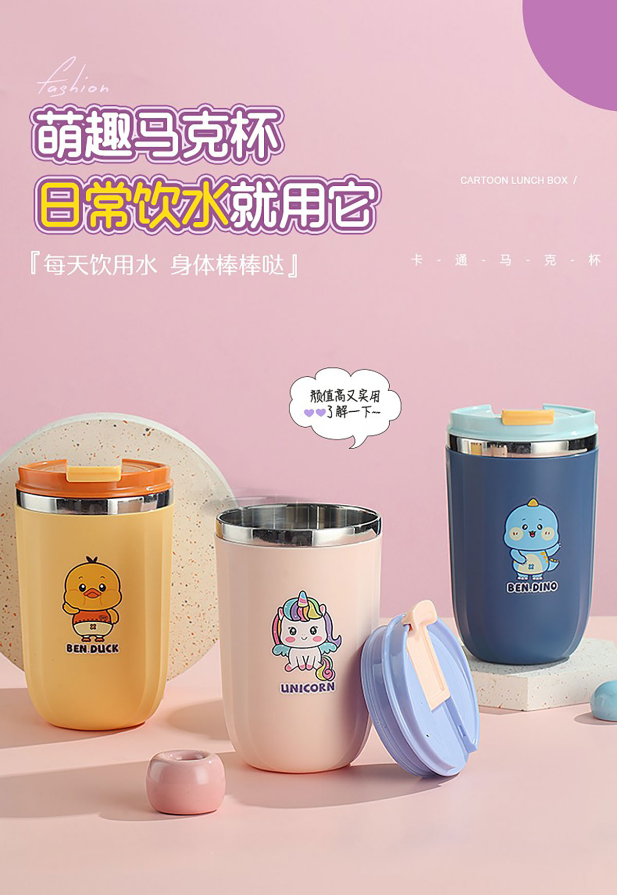 500ml萌趣304不銹鋼翻扣保溫杯
