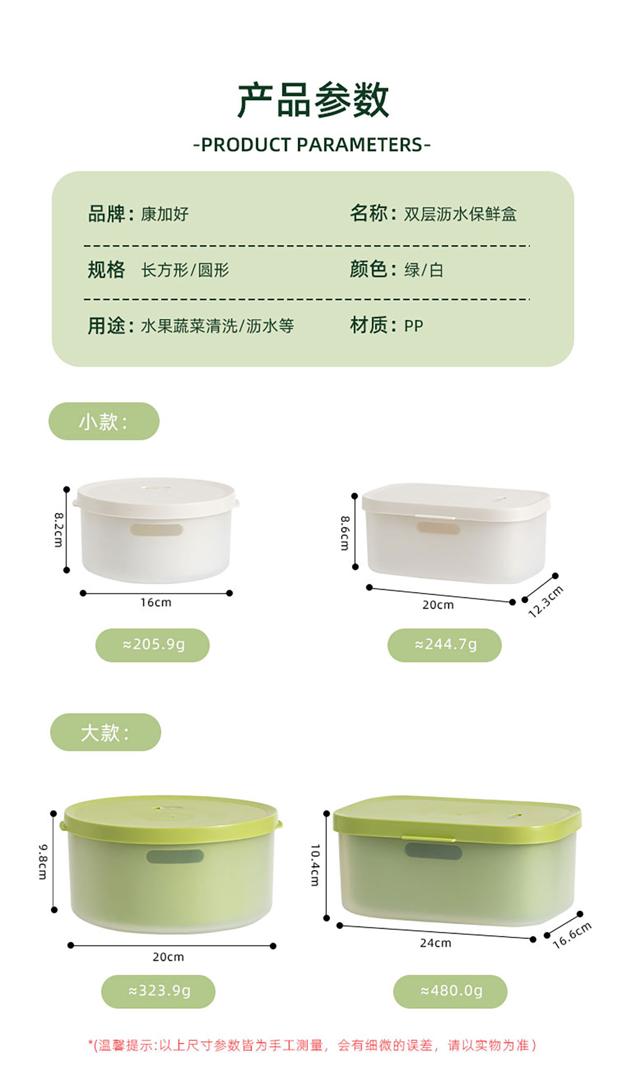 圓形/方形瀝水保鮮盒(小/大)