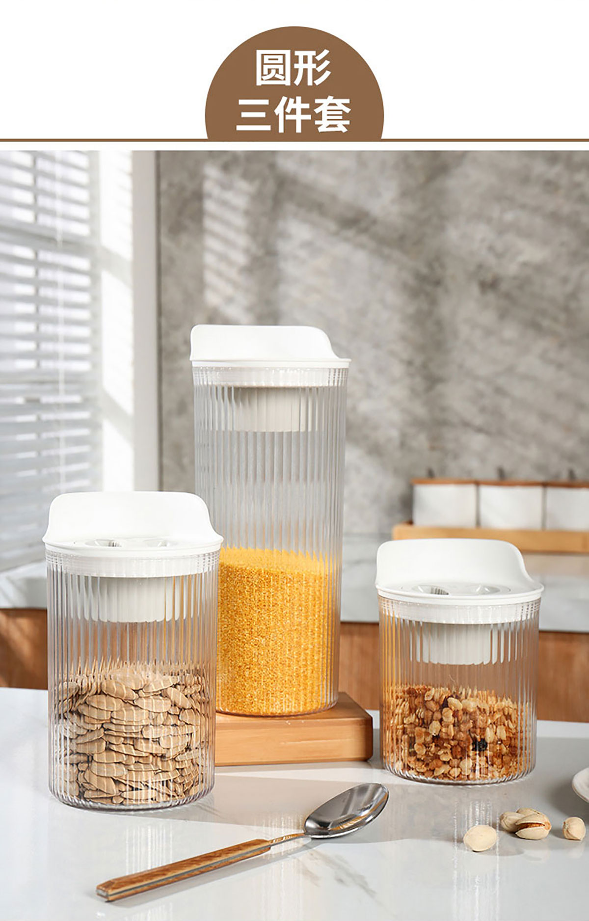 小簡方形/圓形密封儲物罐(3件套)