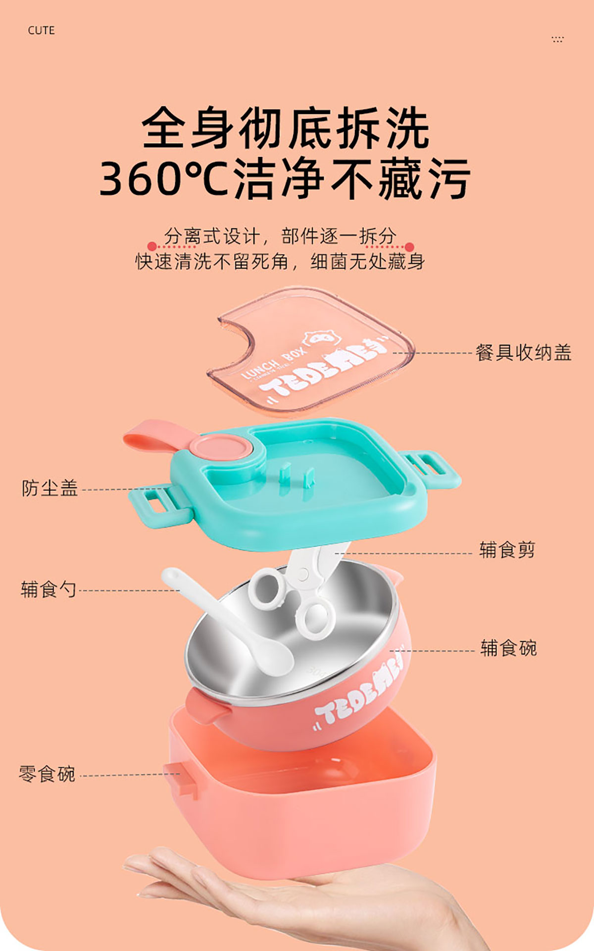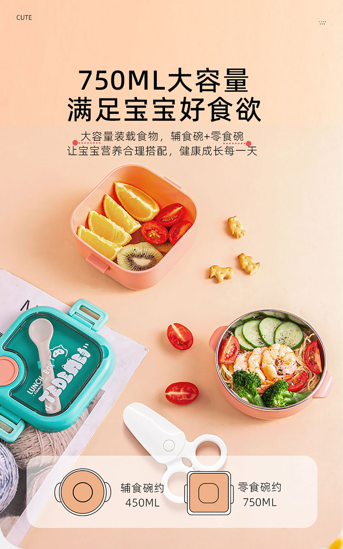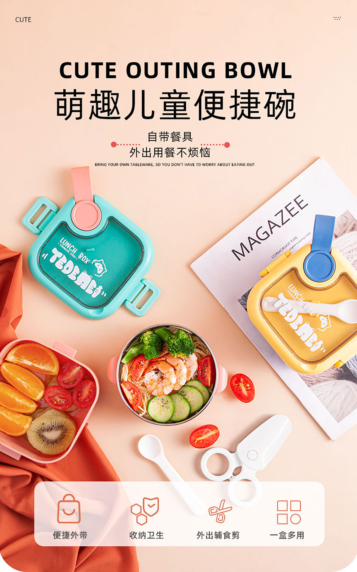 兒童外出抗菌輔食套裝(塑料/不銹鋼)
