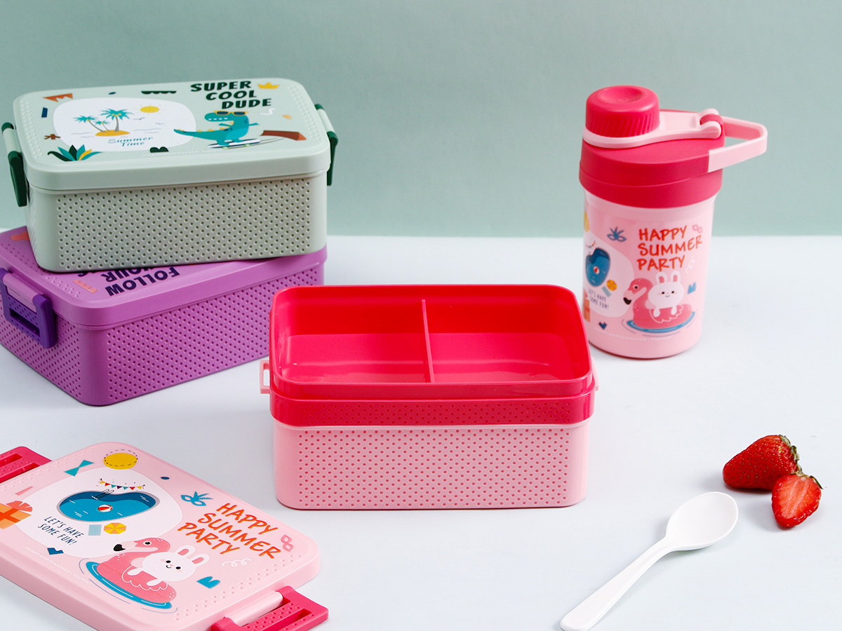 童彩單層/雙層飯盒+運(yùn)動水壺套裝(飯盒800ml/1000ml+水杯350ml