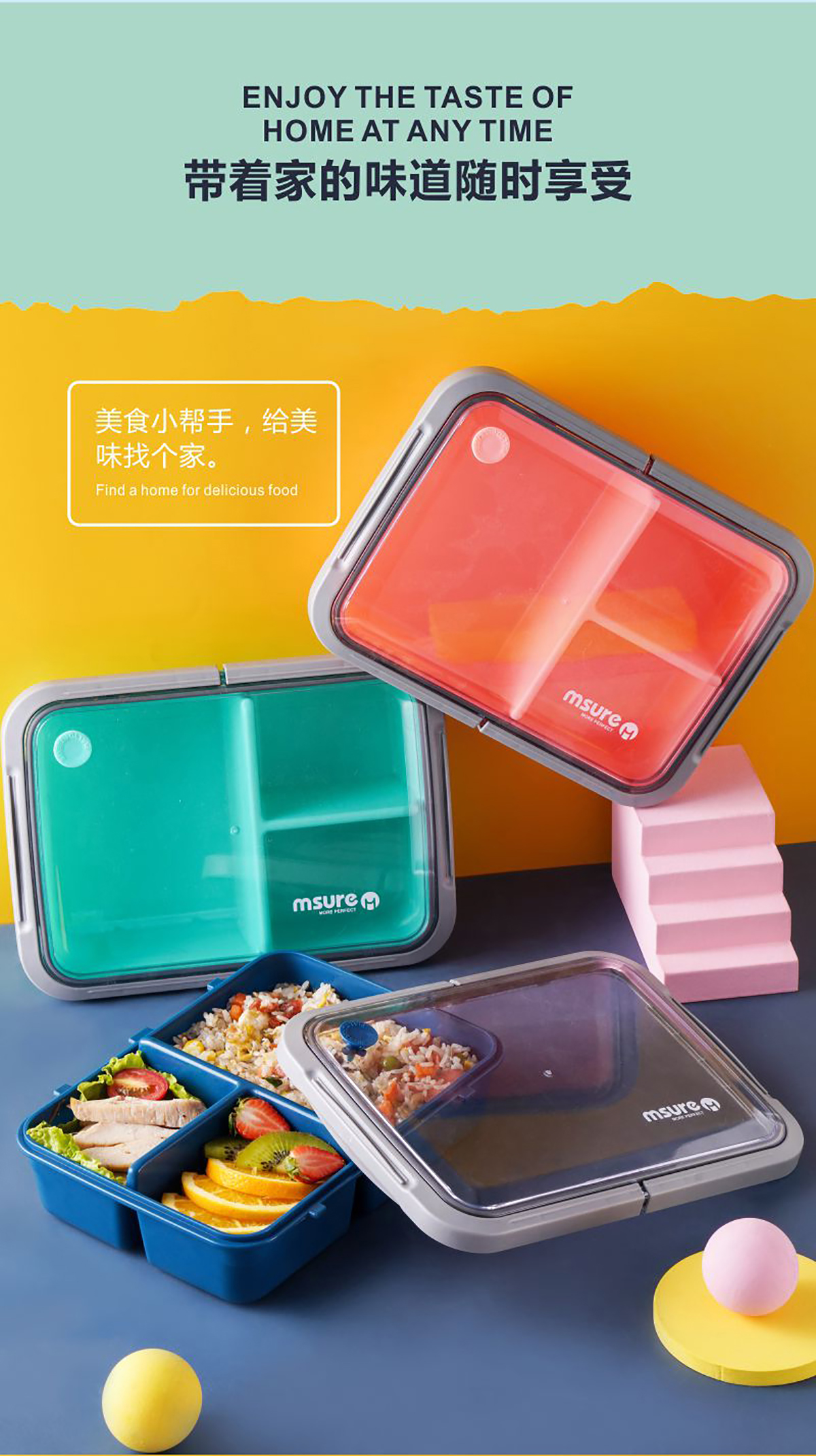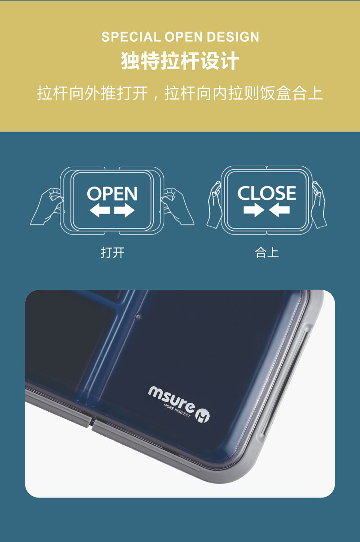扣拉美式密封飯盒(三格)1.5L