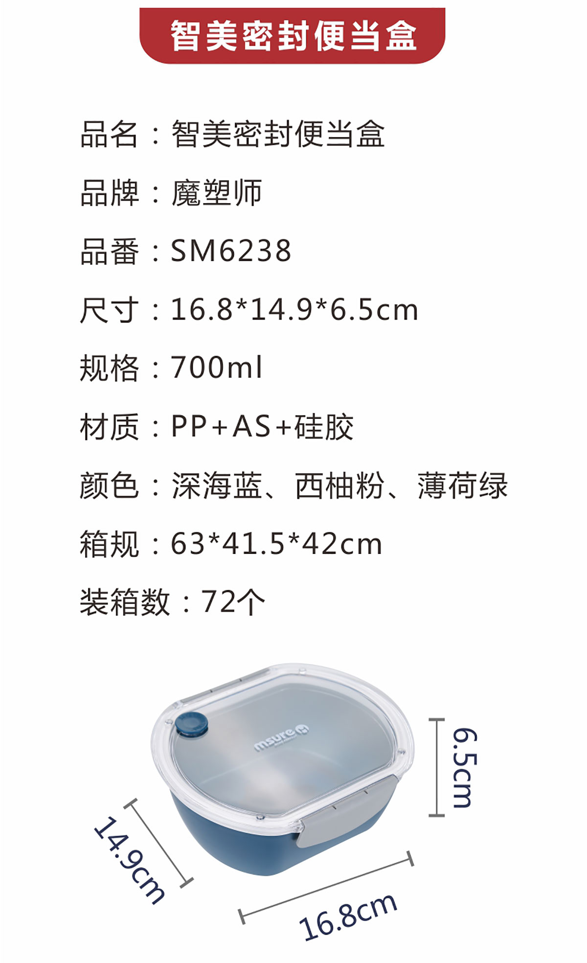智美密封便當盒700ML(20年色款)
