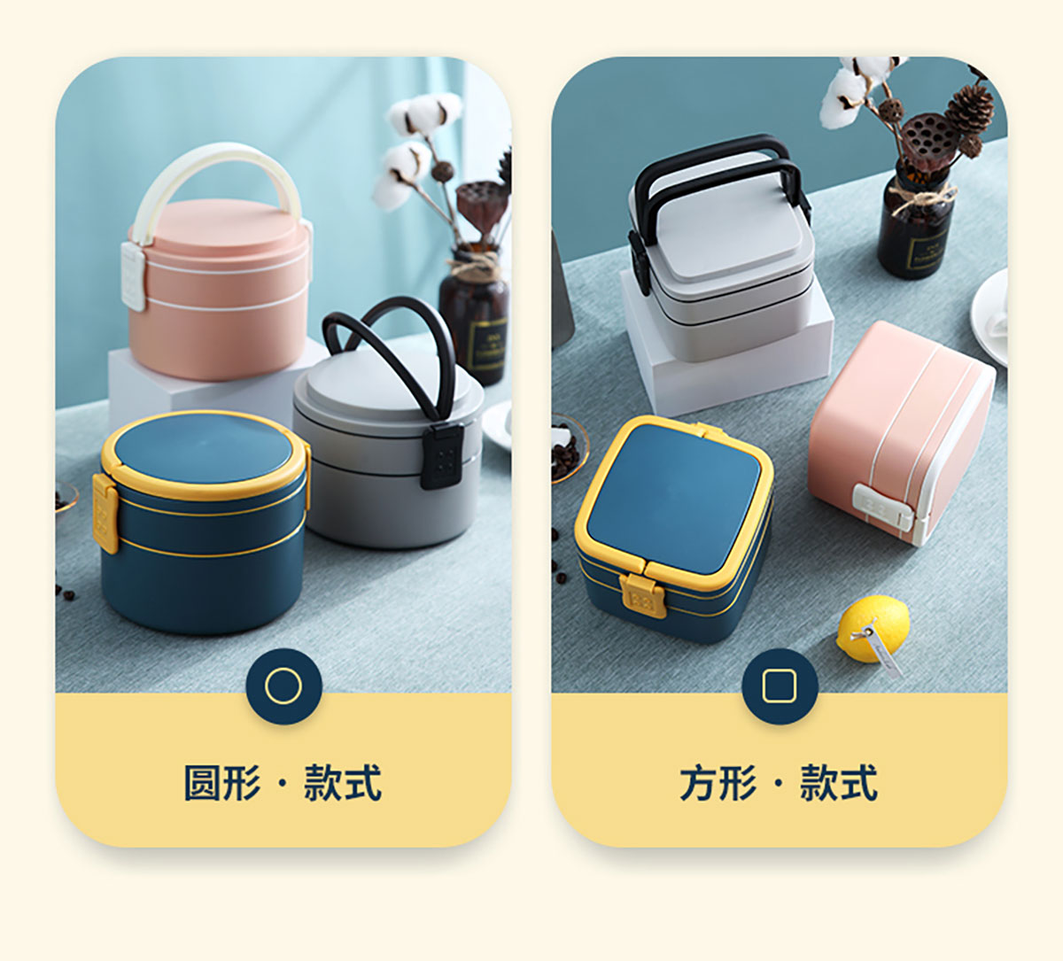 麥纖圓形/方形雙層手提餐盒(1400ml)