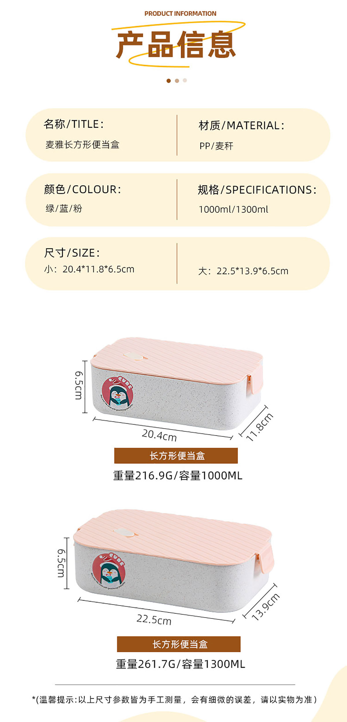 麥雅長(zhǎng)方形便當(dāng)盒1000ml/1300ml