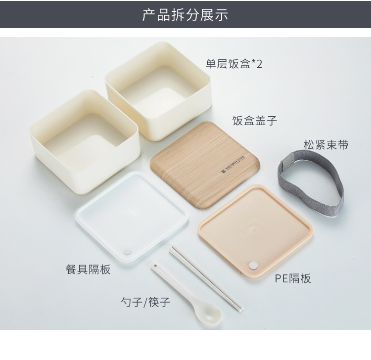 Stuff:蓋子、餐具PS+盒身PP+隔層PE+滌綸
