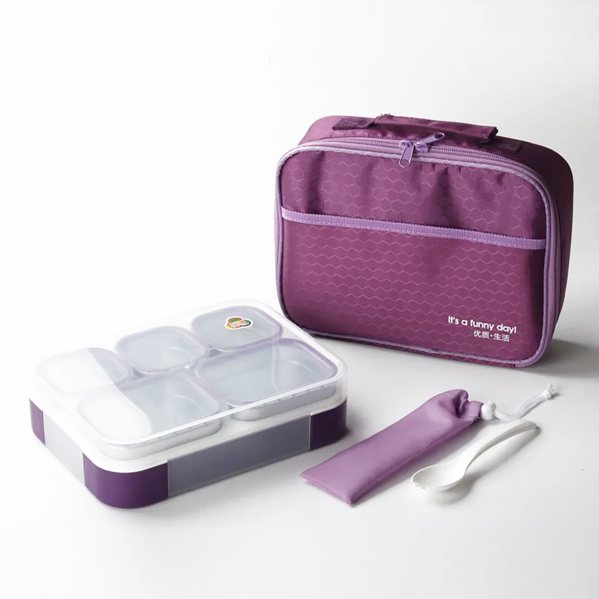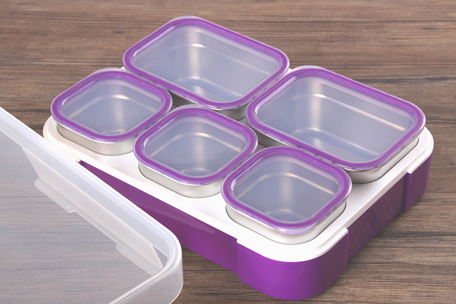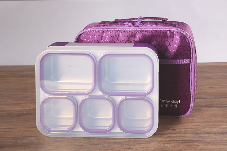 悠悅隨心活動(dòng)五格不銹鋼便當(dāng)盒(1000ml)配塑料勺子