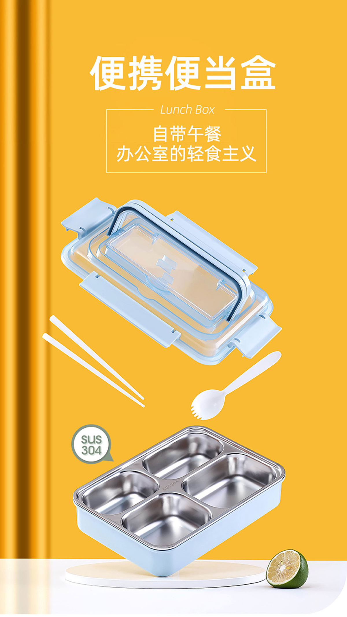 便捷式不銹鋼飯盒 小號(三格/四格)大號(四格/五格)