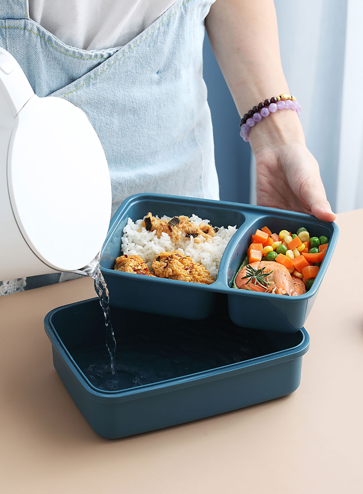 莫蘭迪長(zhǎng)方雙格飯盒