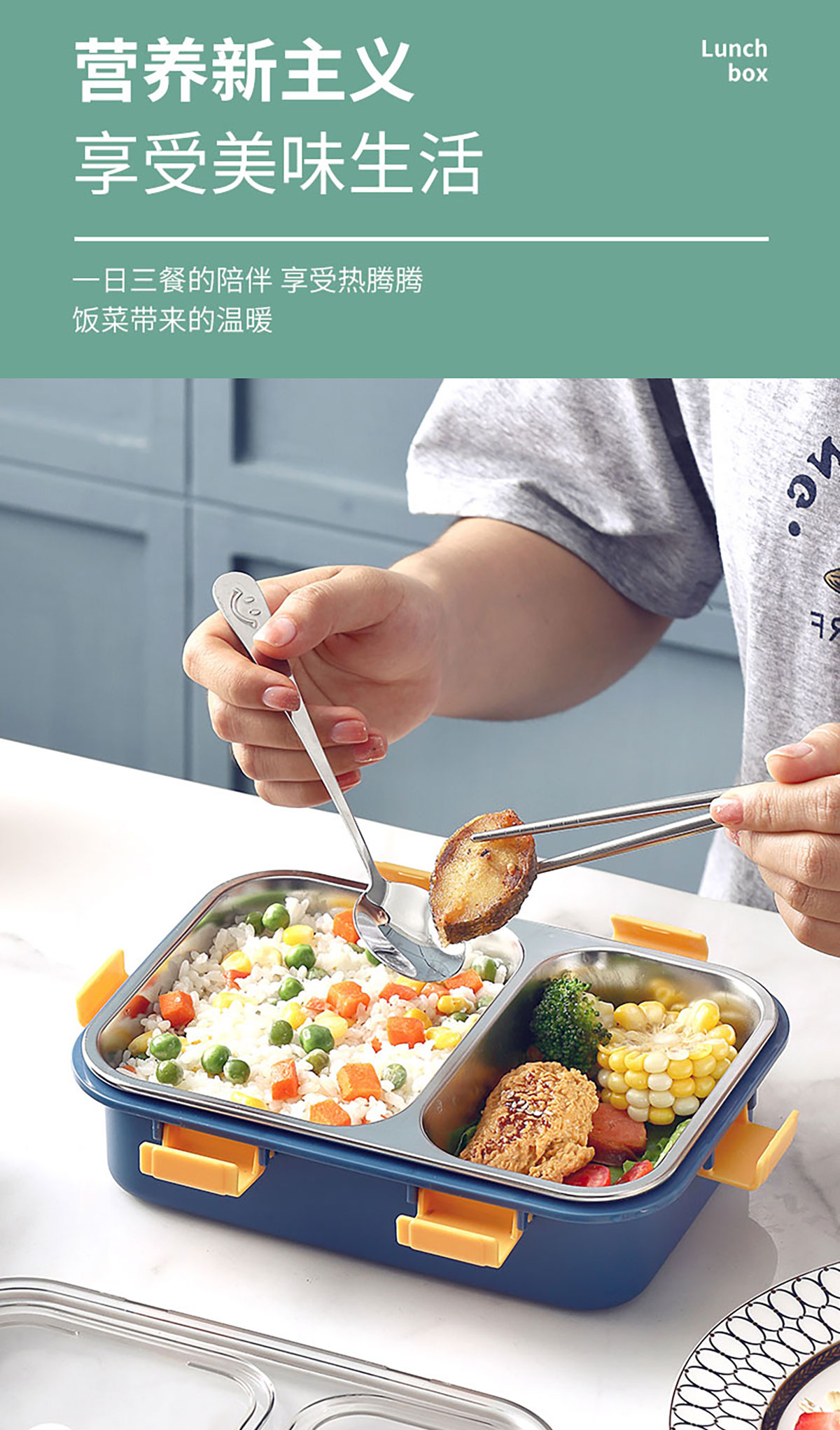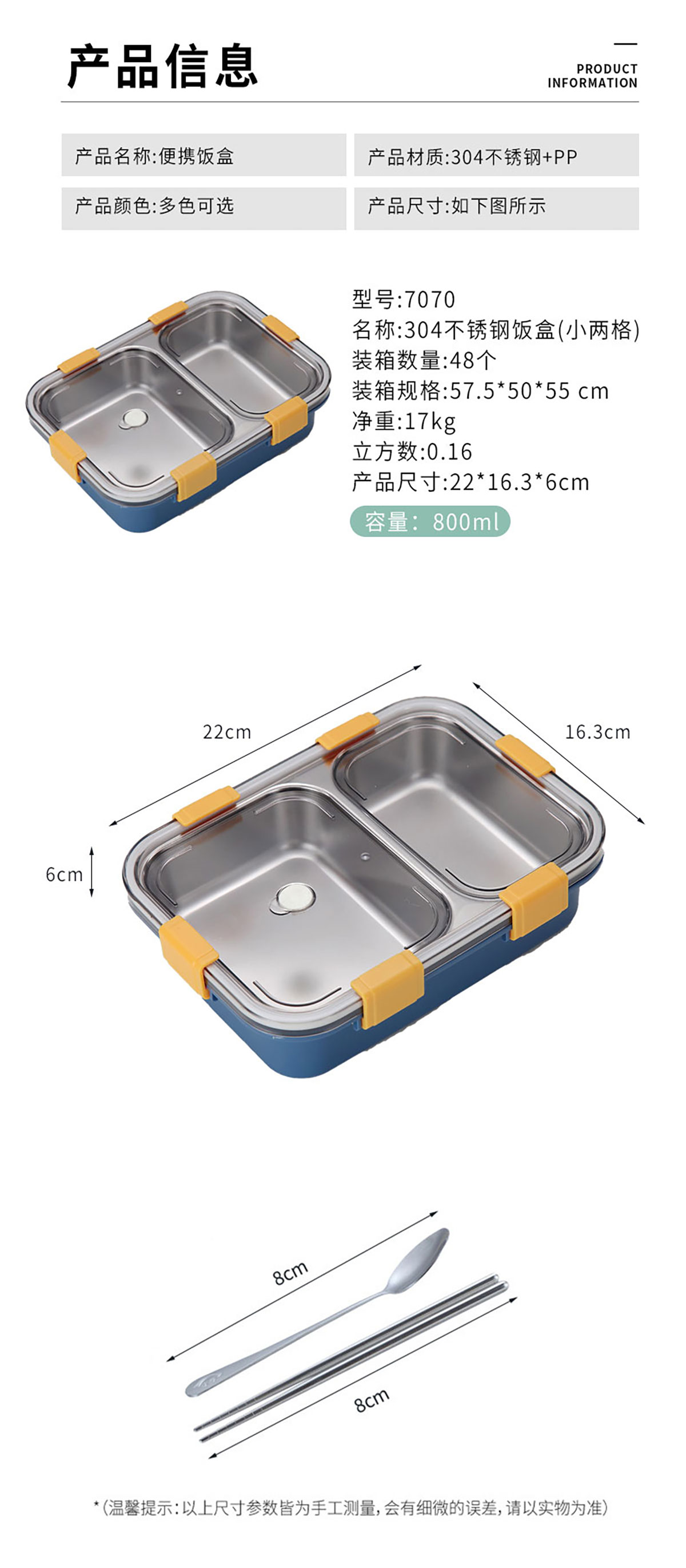 304不銹鋼飯盒小號(hào)2格 800ml