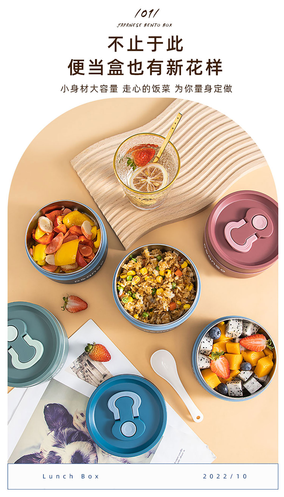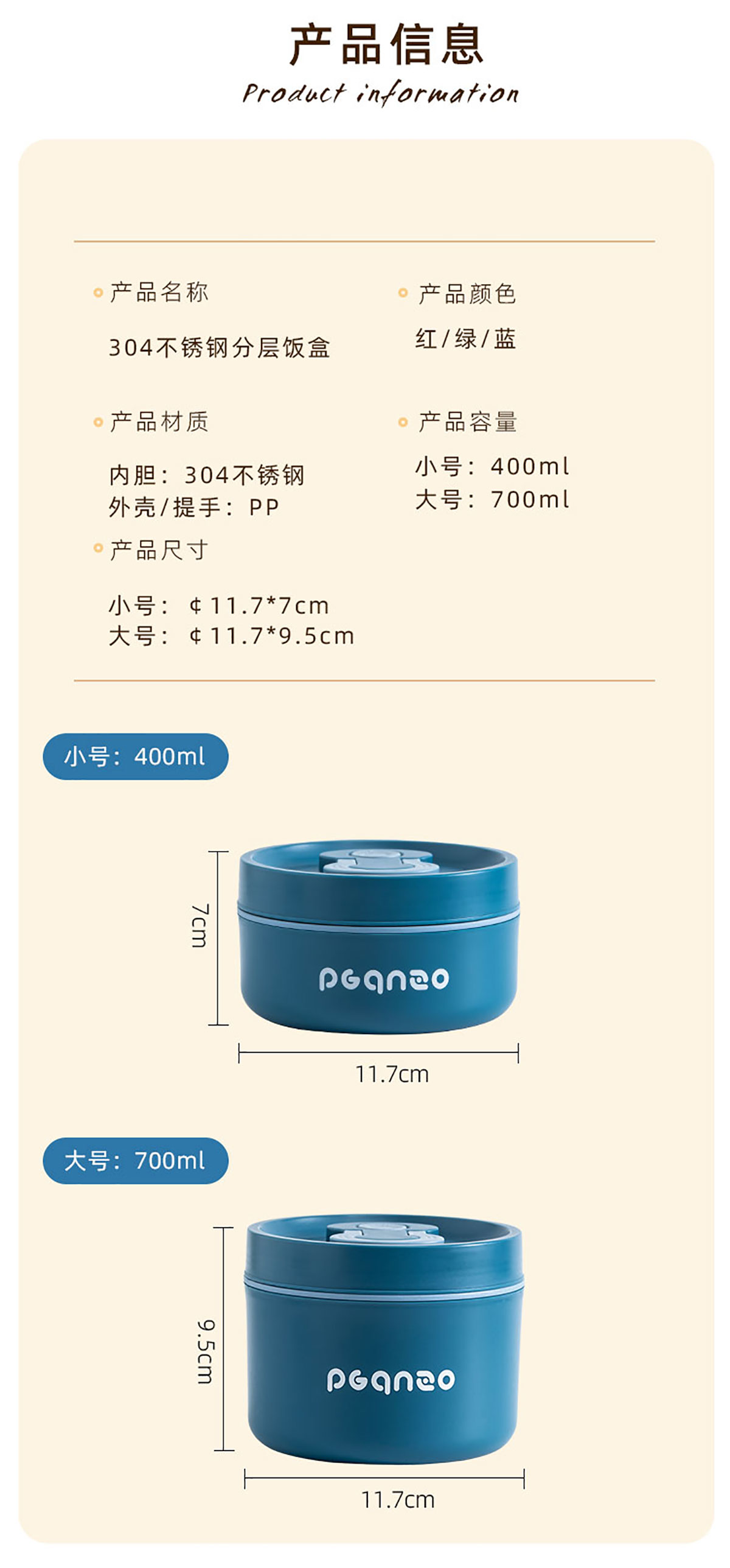 旋蓋不銹鋼便當(dāng)盒400ml/700ml(小號(hào)/大號(hào))
