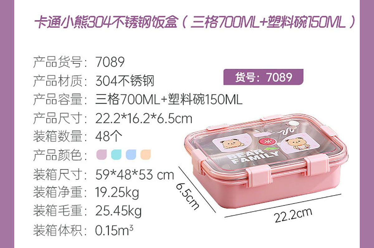 LX-7089(三格+碗700ml+150ml):222*162*65mm