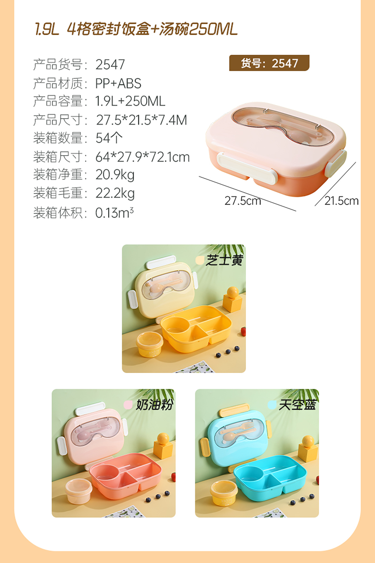 AQX-2547(飯盒+湯碗250ml/1.9L):275*215*74mm