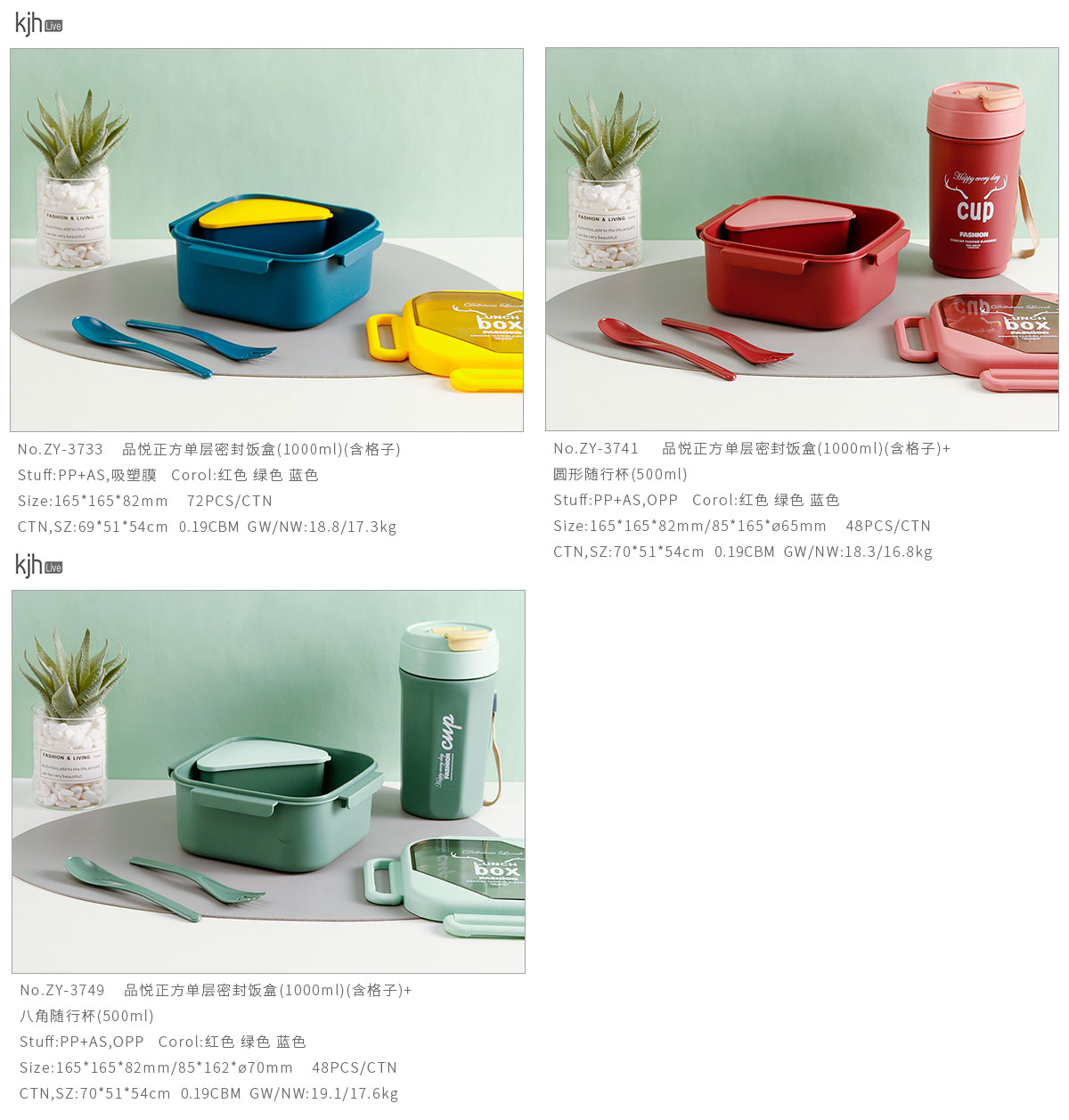 品悅正方單層分格/單層(含格子)密封飯盒+圓形/八角隨行杯