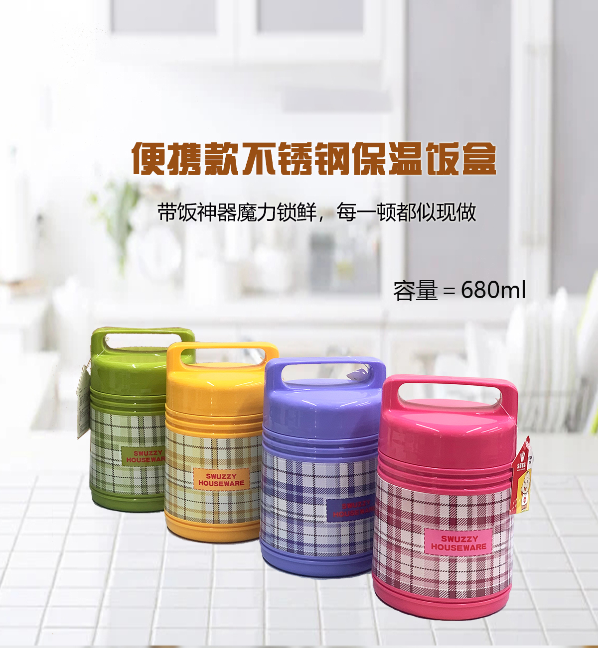 保溫瓶(全鋼內膽)格紋680ml