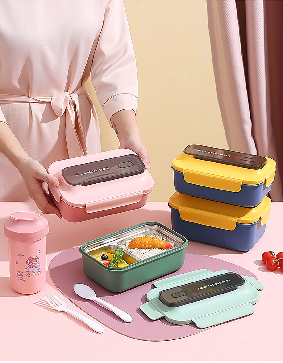 簡(jiǎn)易便當(dāng)盒(PP款/PP加高款/不銹鋼款/套裝款) 老色