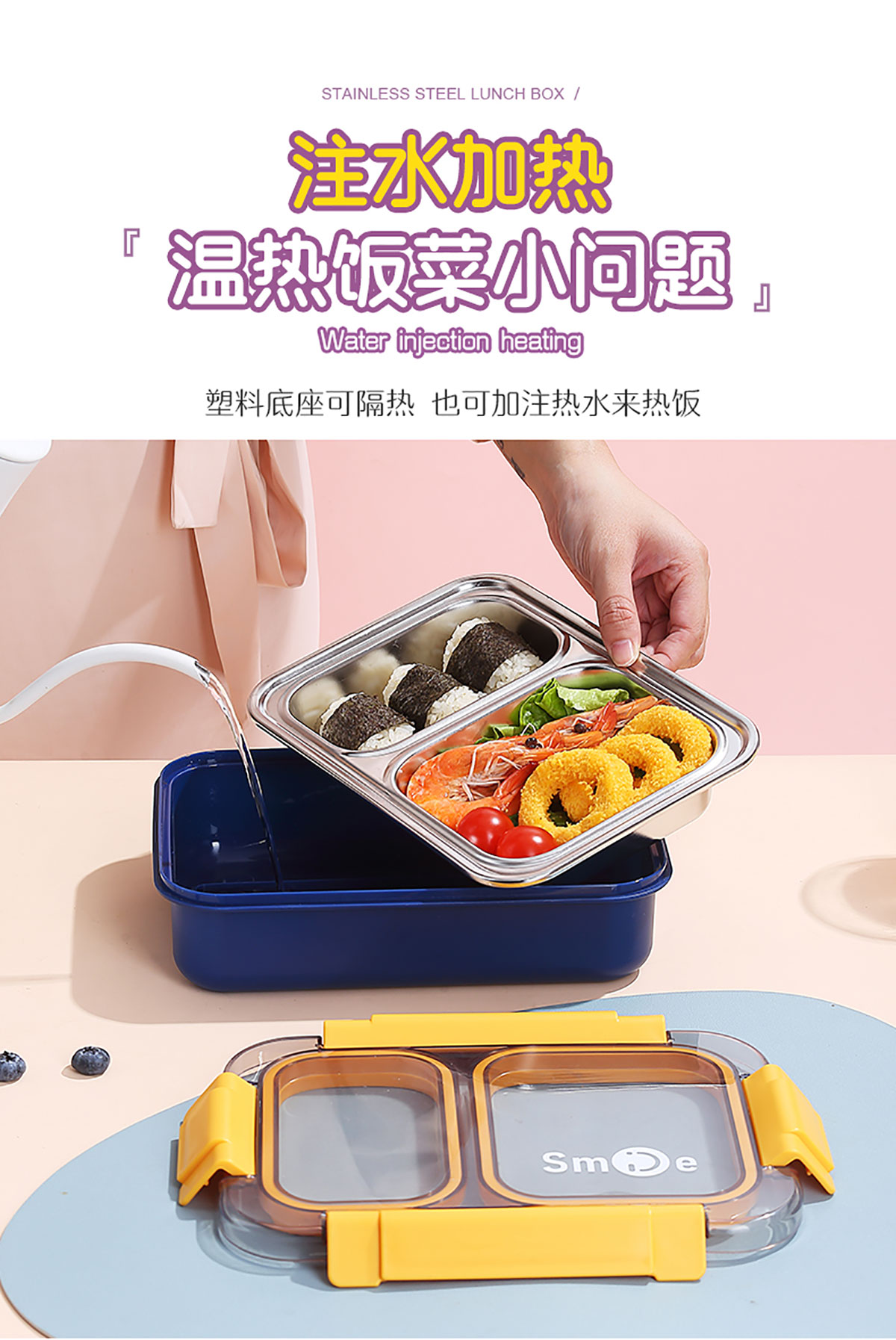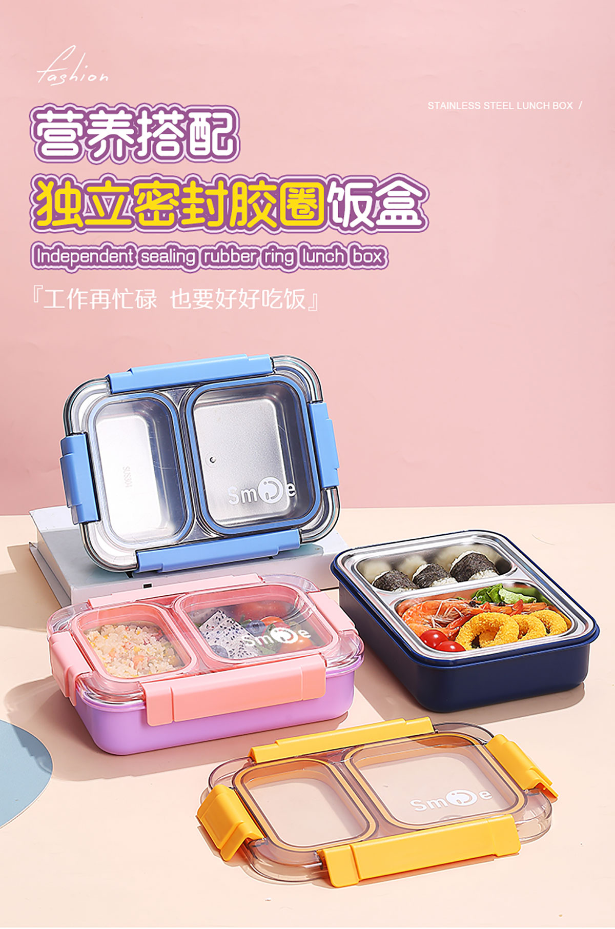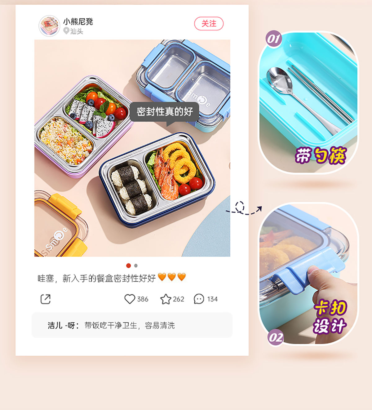 750ml獨立密封不銹鋼餐盒2格+不銹鋼勺筷