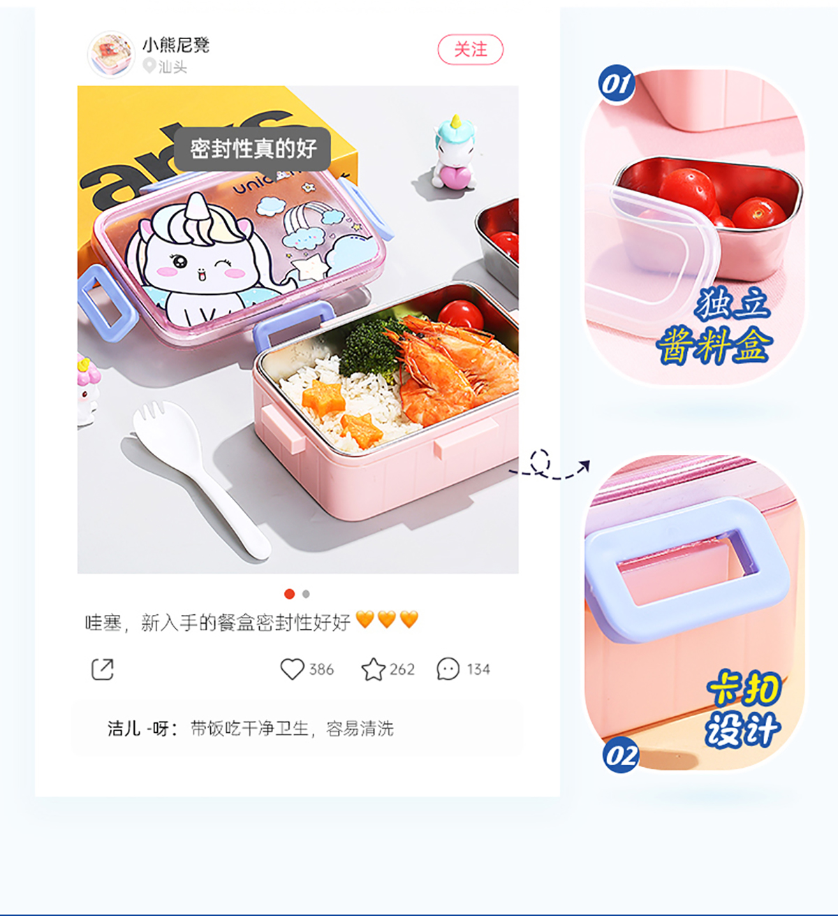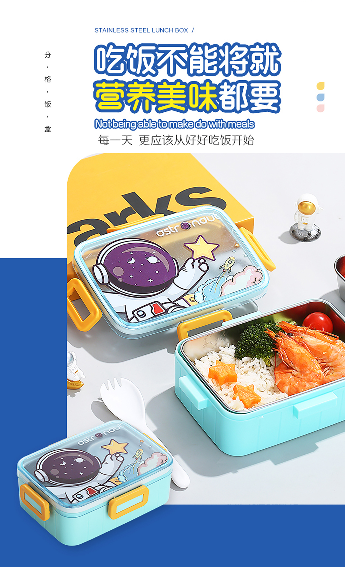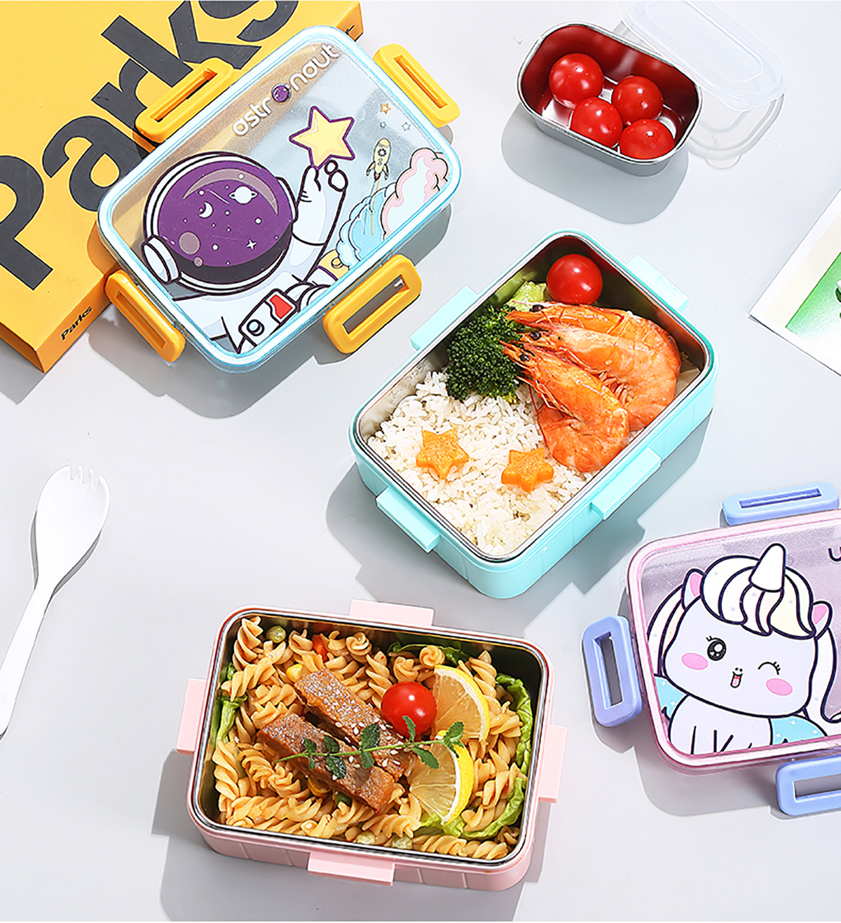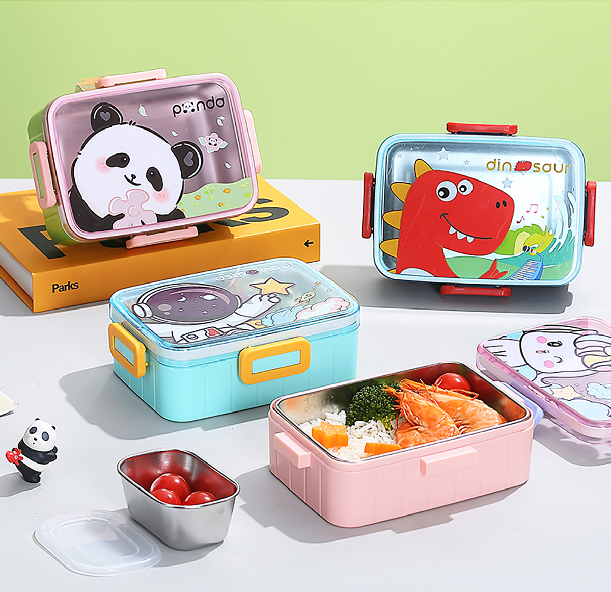 萌趣卡通不銹鋼飯盒(1格600ml/600ml+碗100ml)