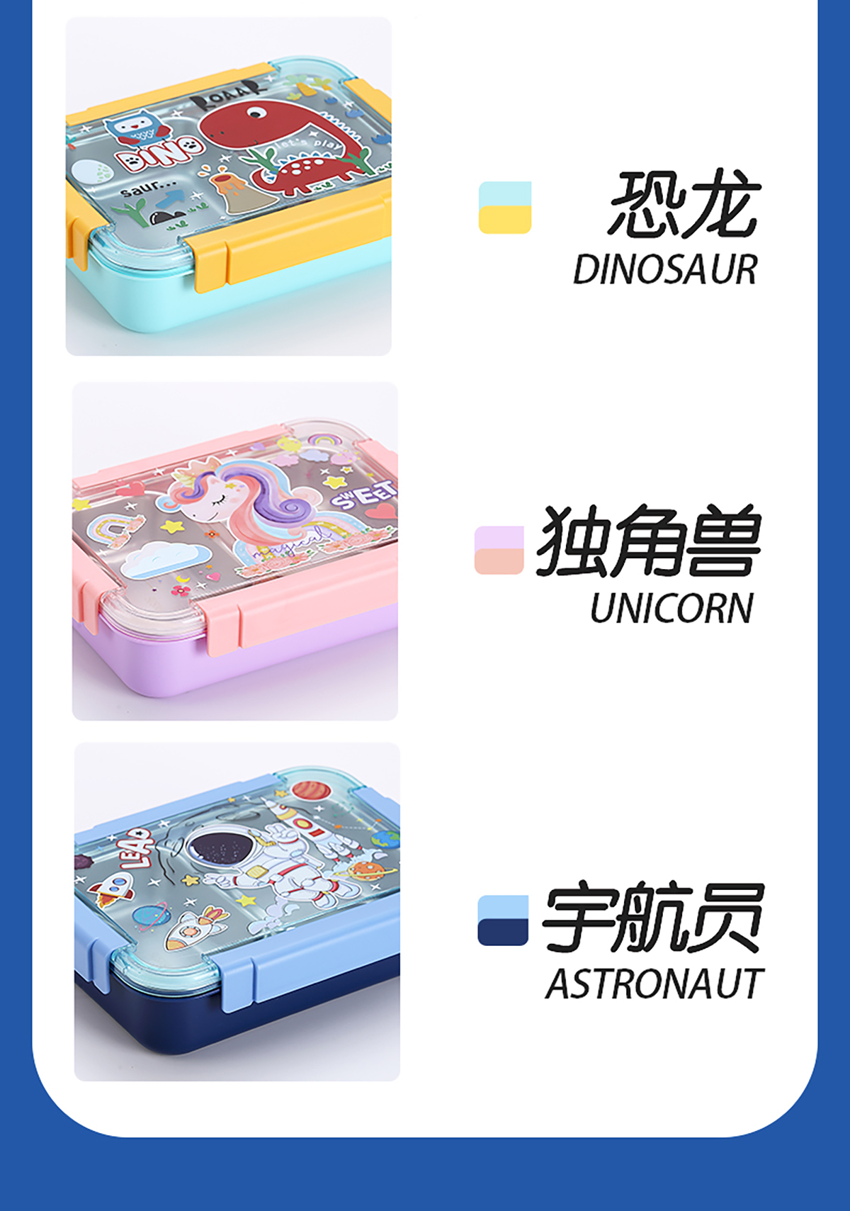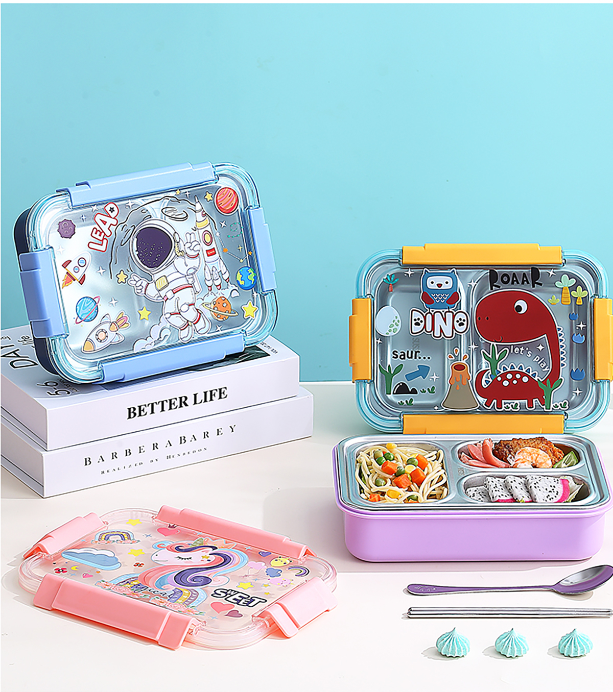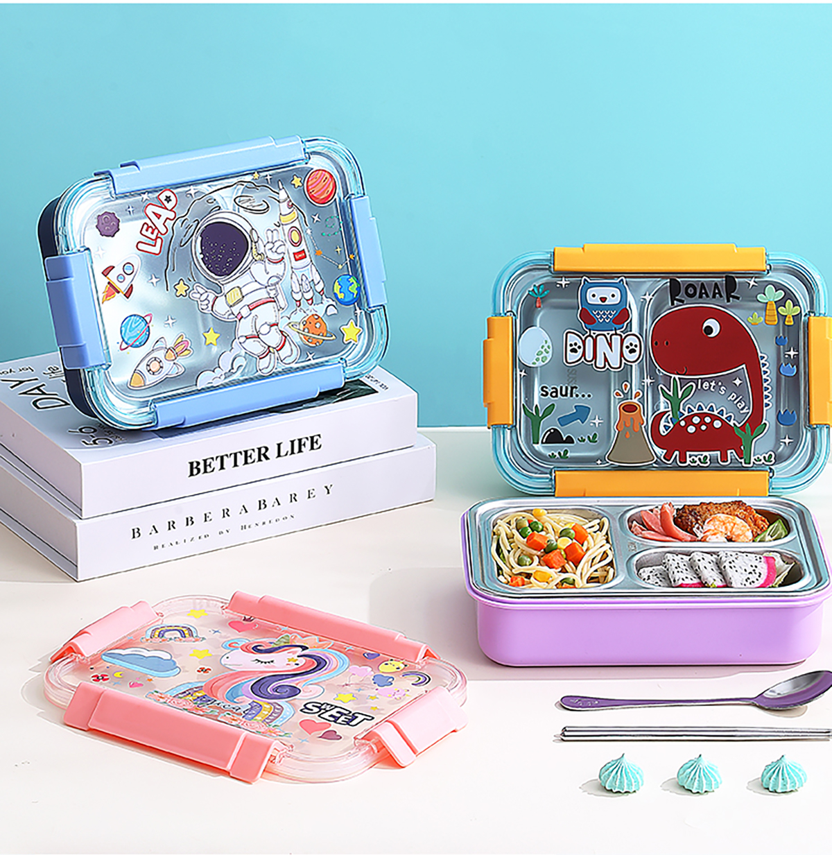 幻彩卡通密封不銹鋼餐盒(2格750ml/3格710ml+不銹鋼筷勺)