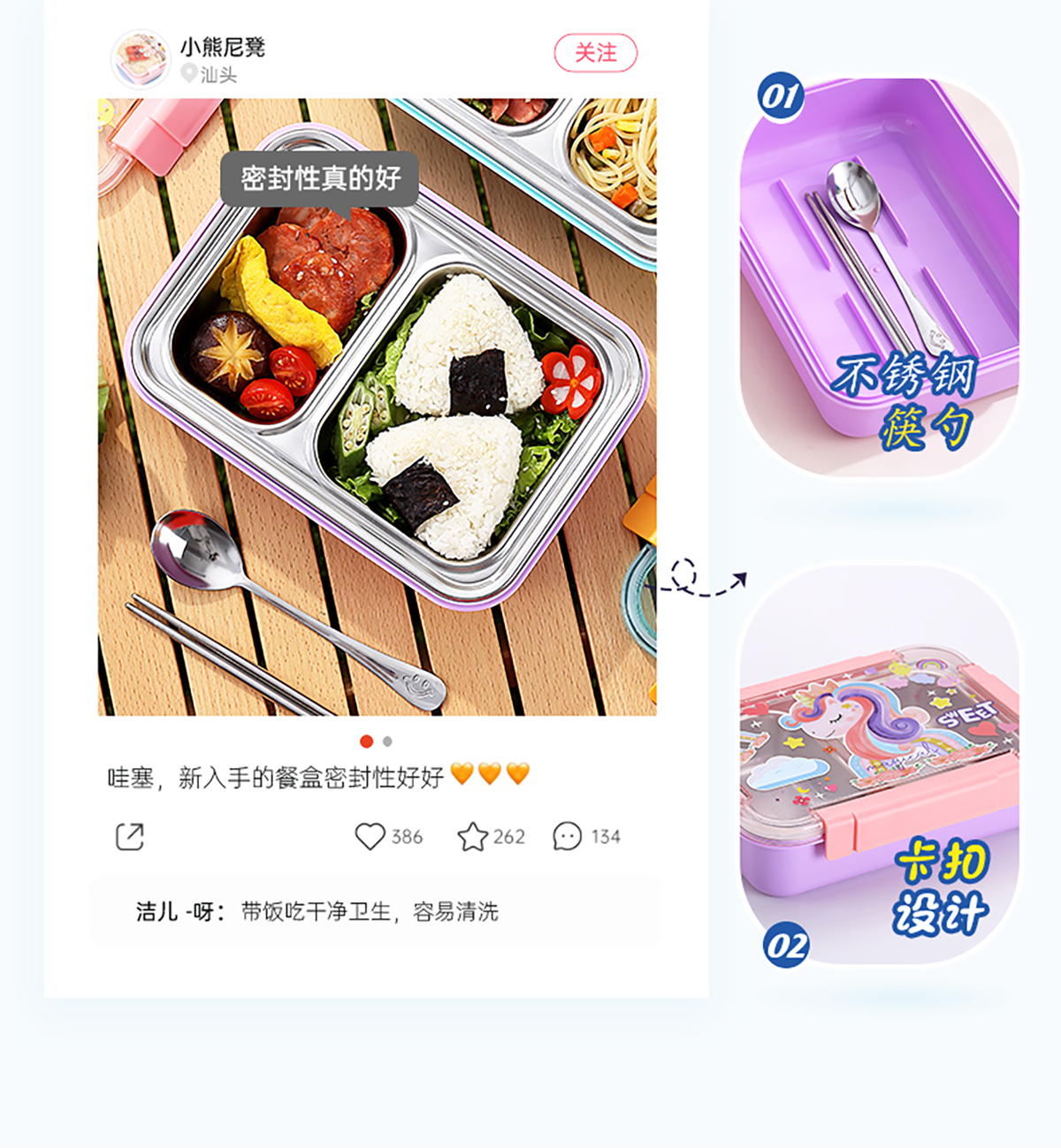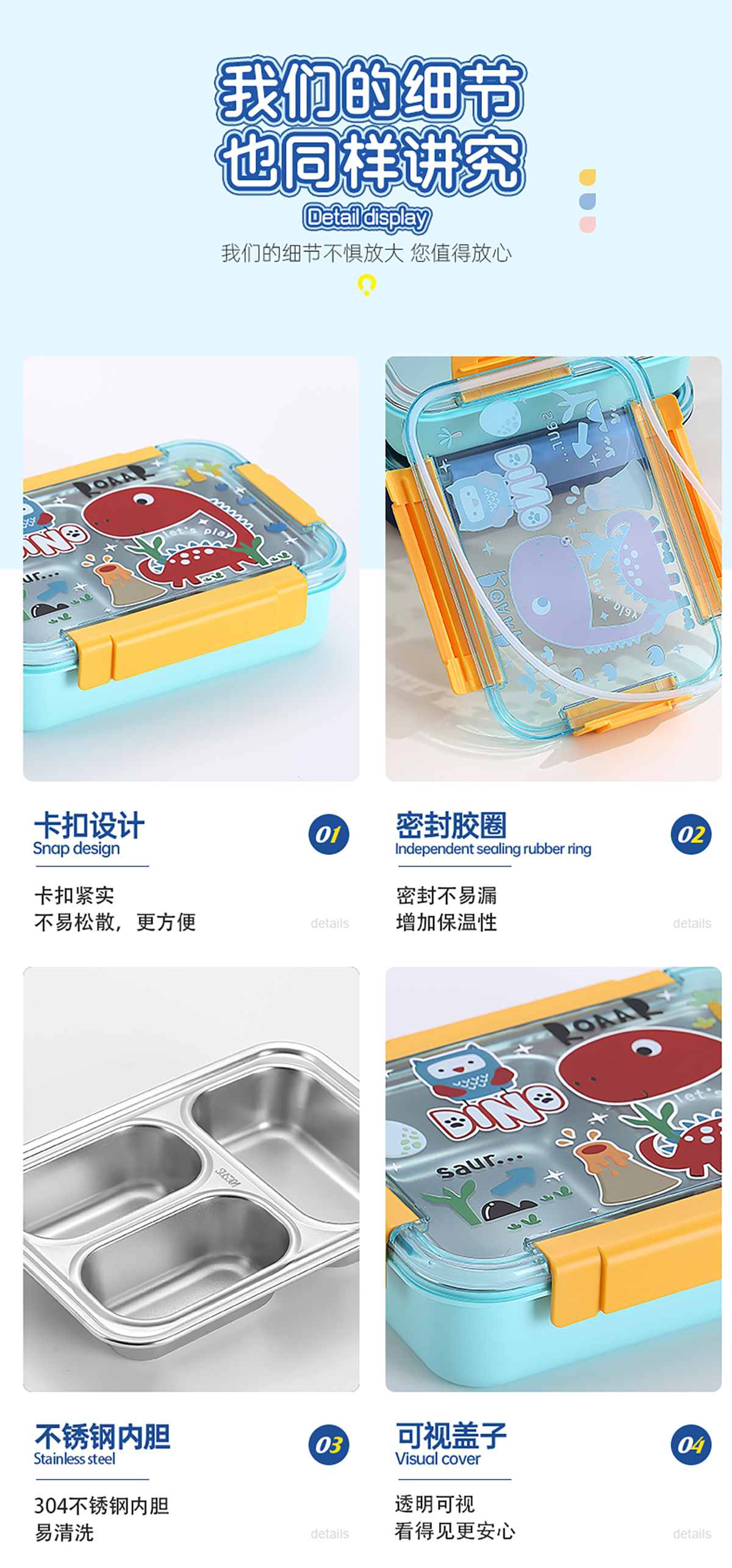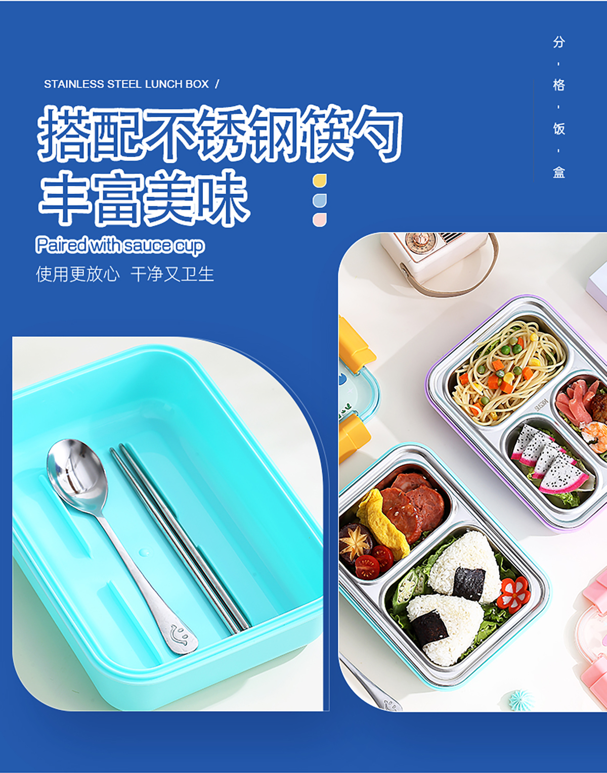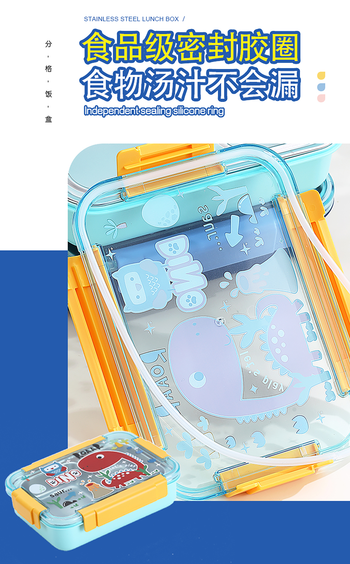 幻彩卡通密封不銹鋼餐盒(2格750ml/3格710ml+不銹鋼筷勺)