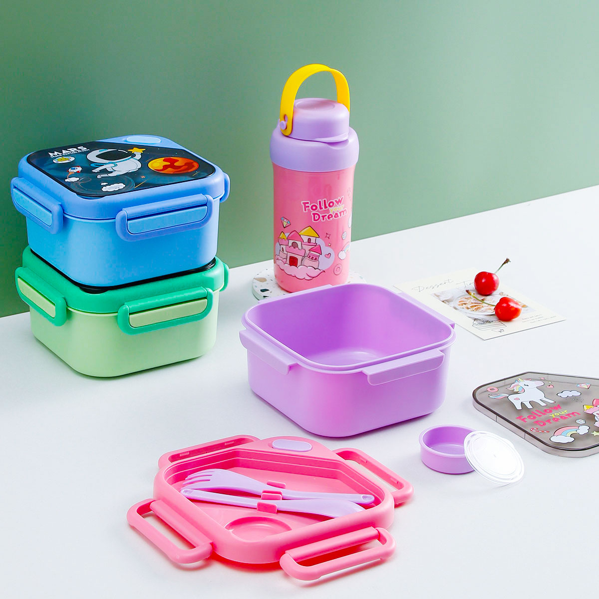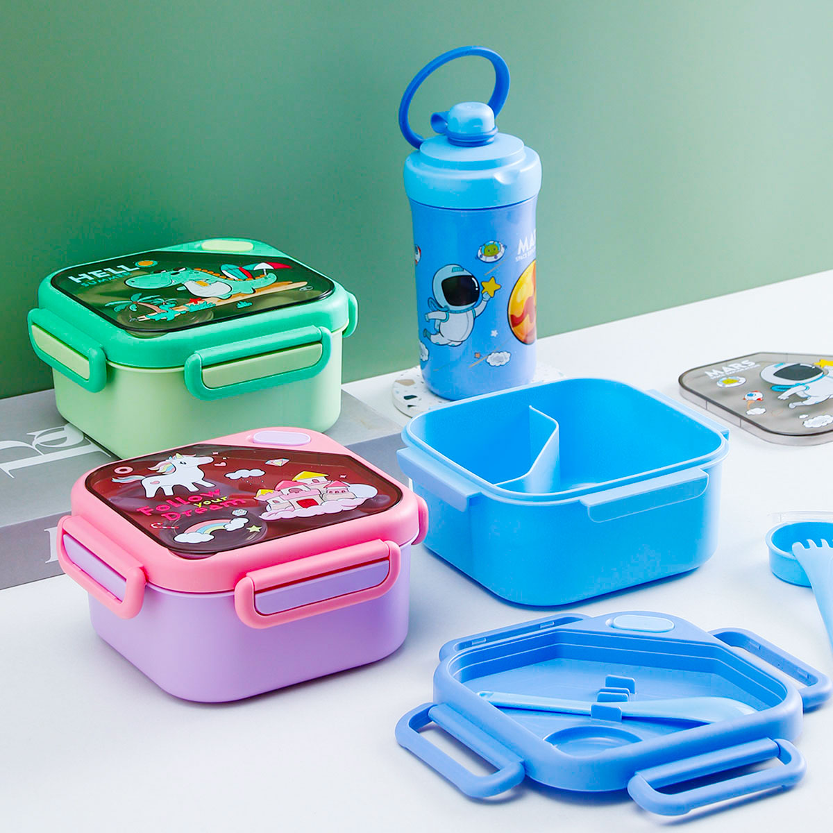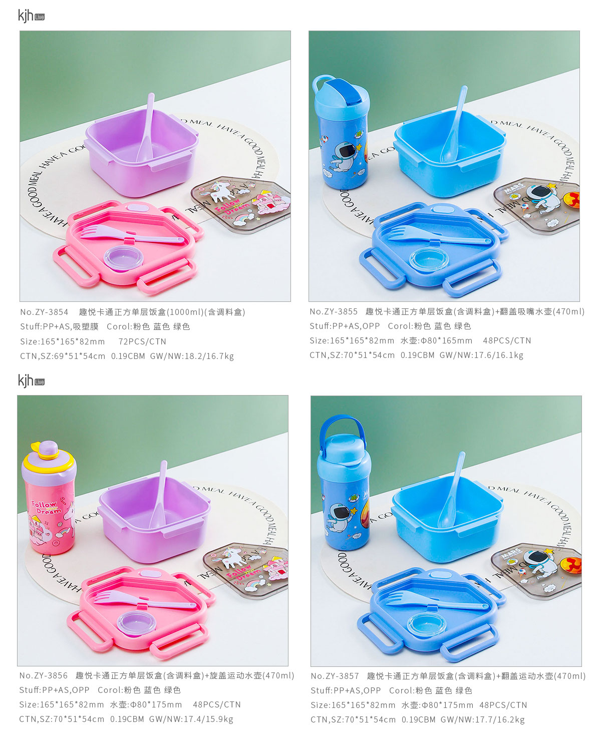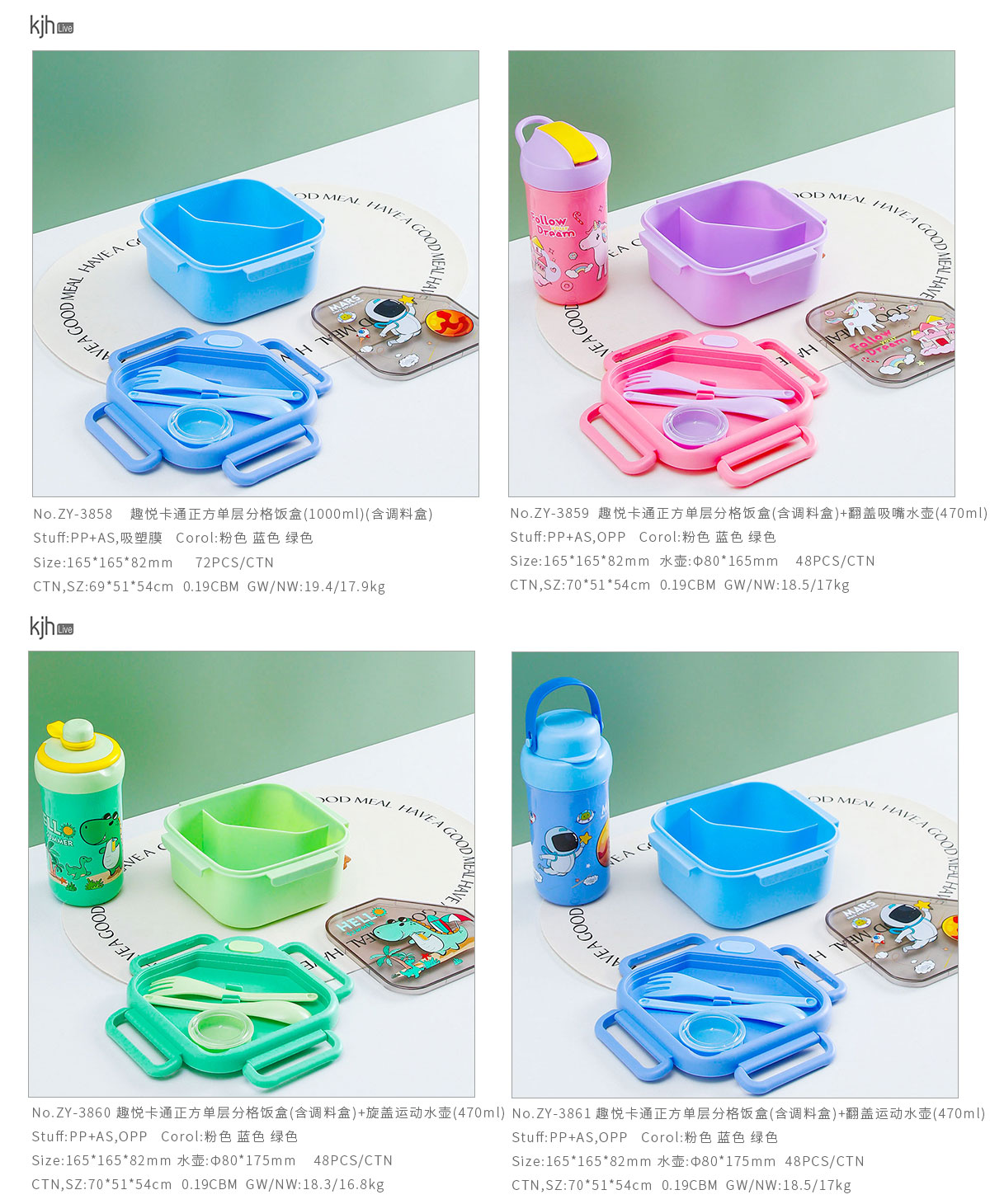 趣悅卡通正方單層/分格飯盒(含調(diào)料盒)+翻蓋吸嘴/旋蓋運(yùn)動(dòng)/翻蓋運(yùn)動(dòng)水壺