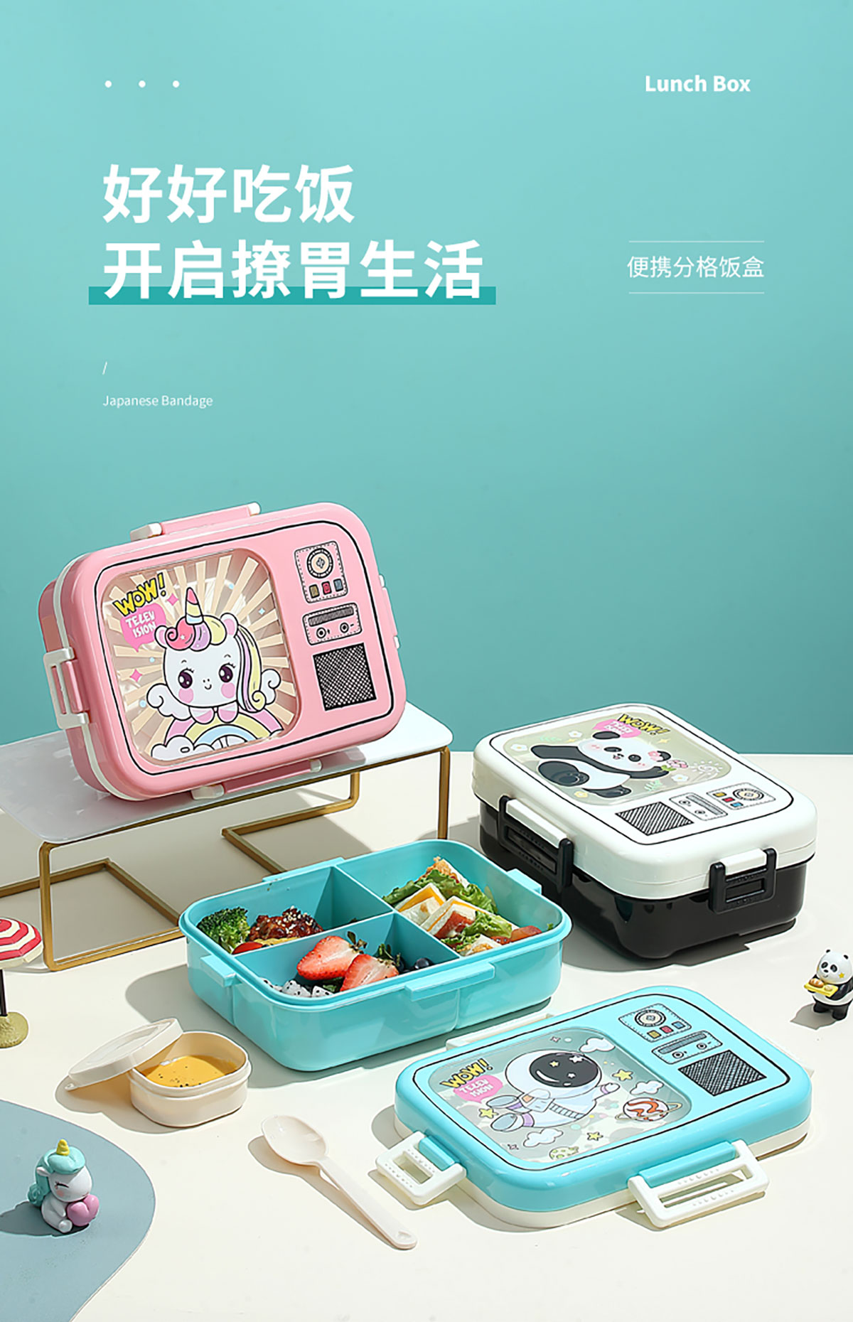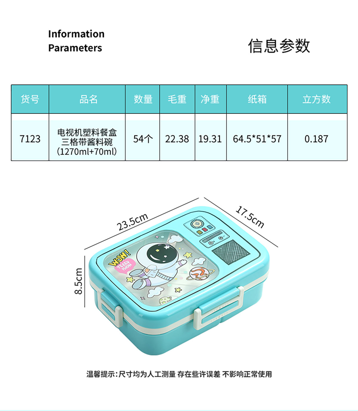 電視機塑料飯盒/三格1270ml+70ml