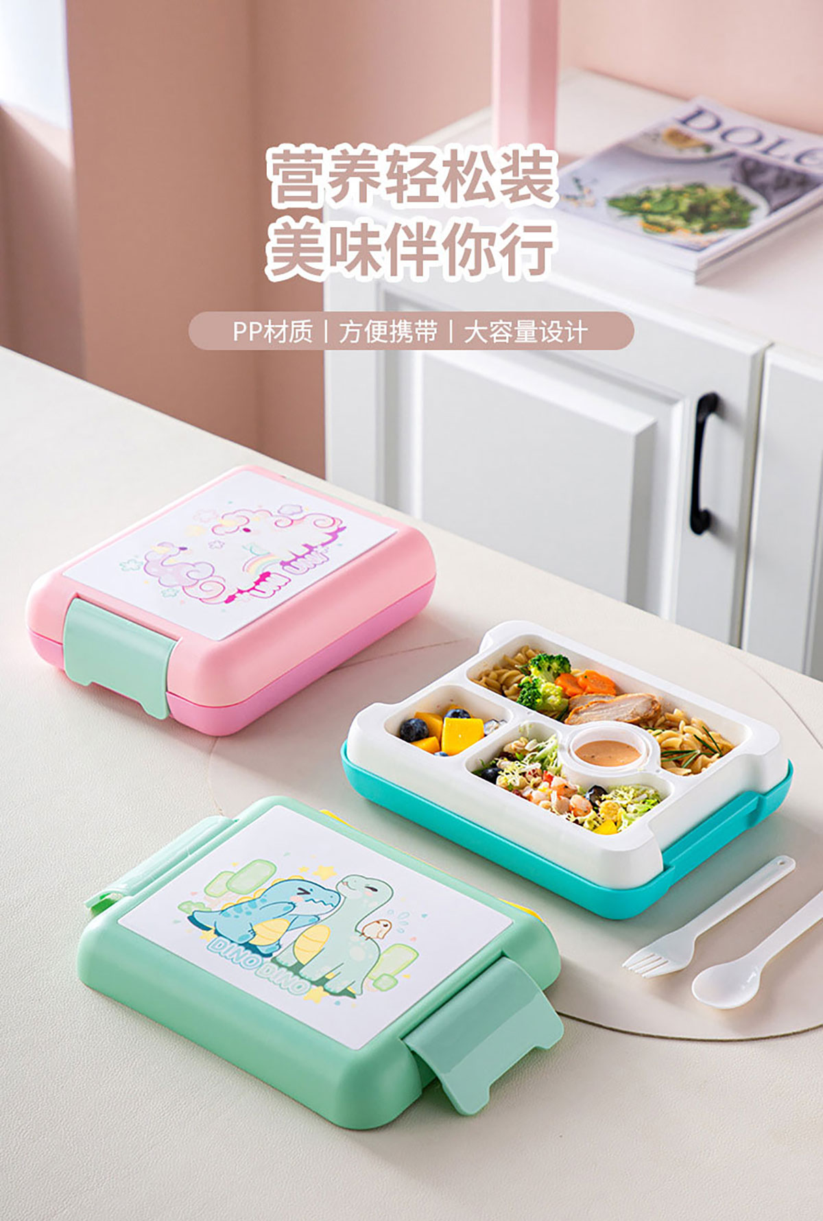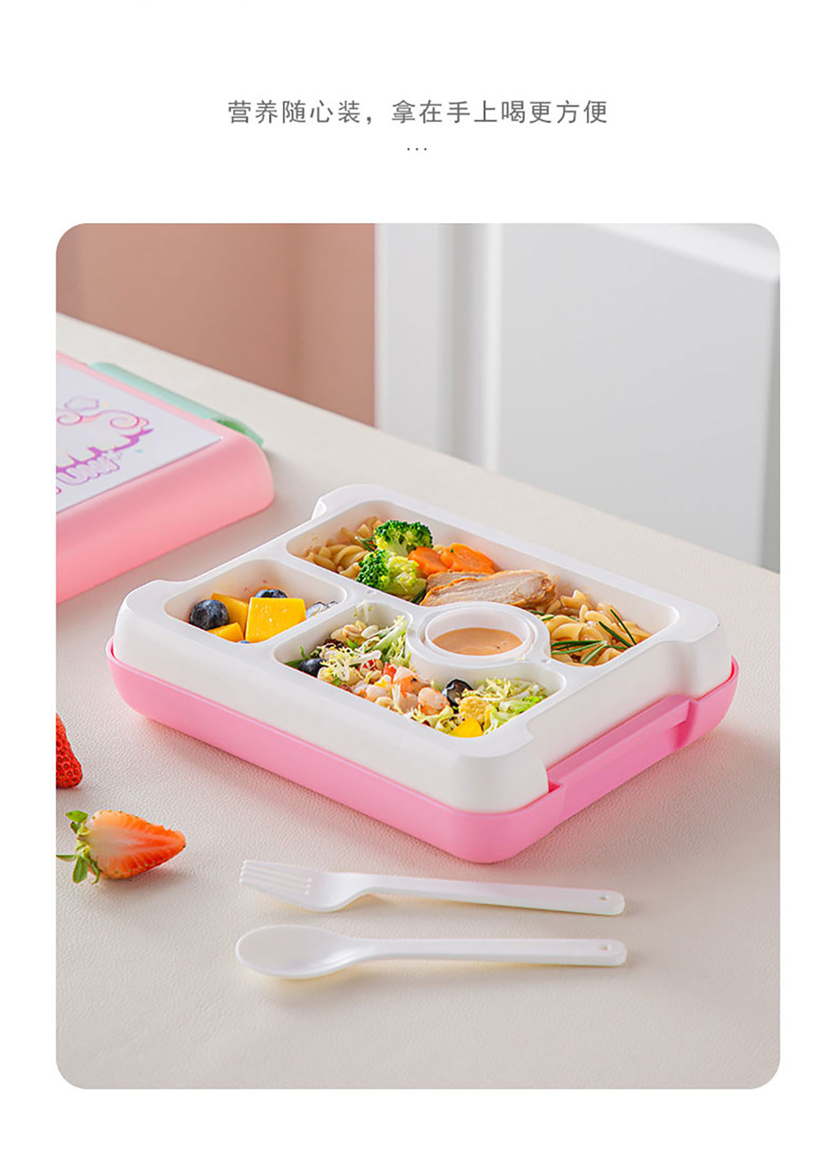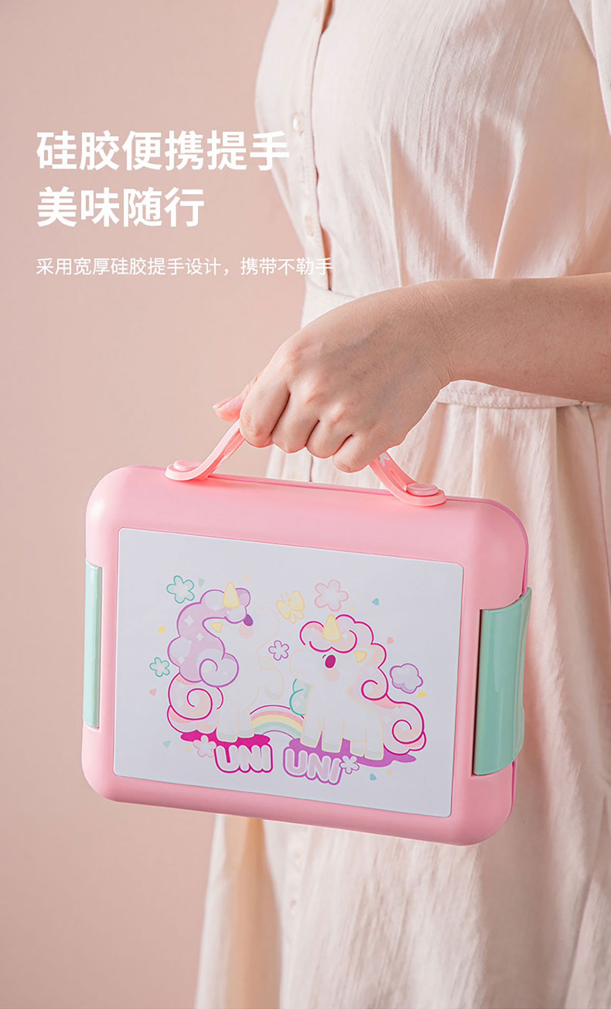 卡通款手提飯盒(配叉勺+醬料盒)
