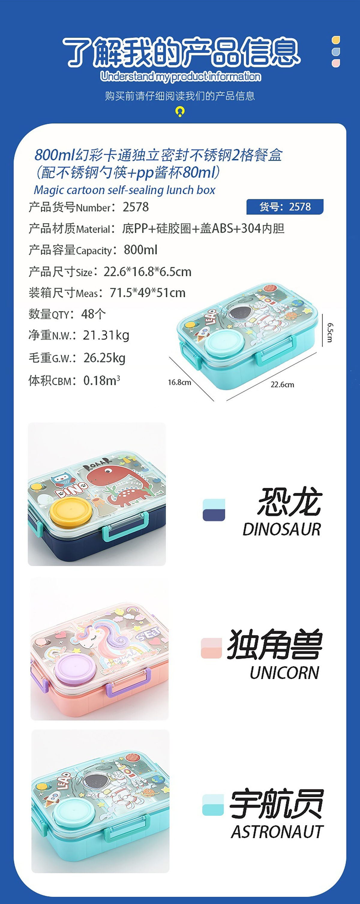 AQX-2578(2格):226*168*65mm/800ml