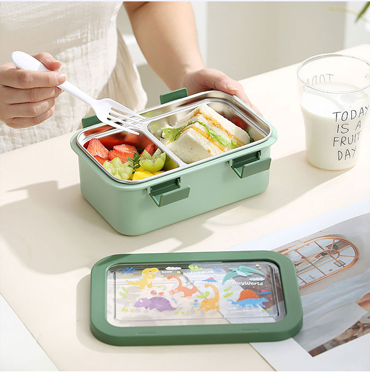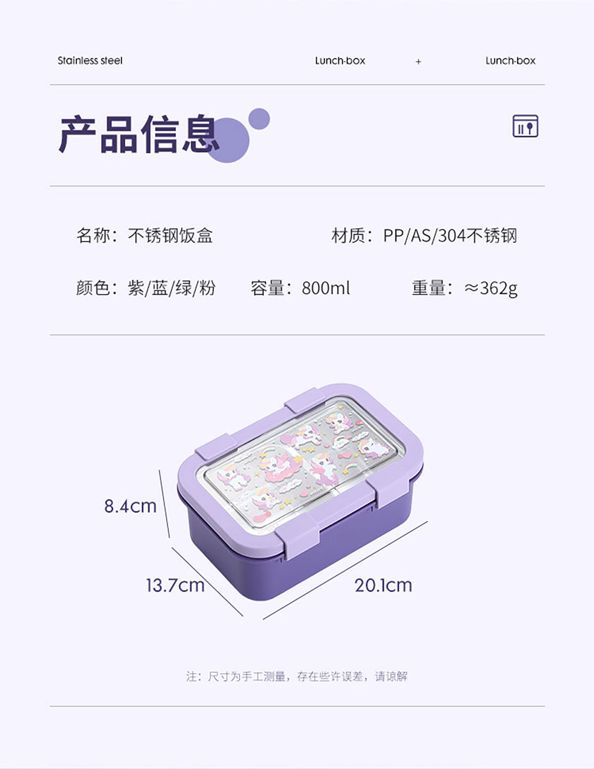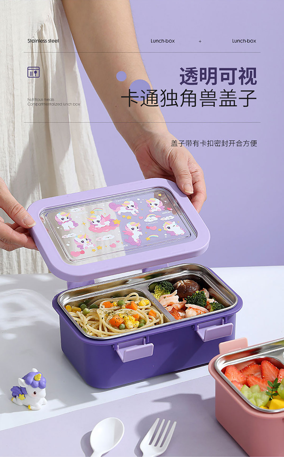 卡通不銹鋼飯盒(不銹鋼二格)800ml