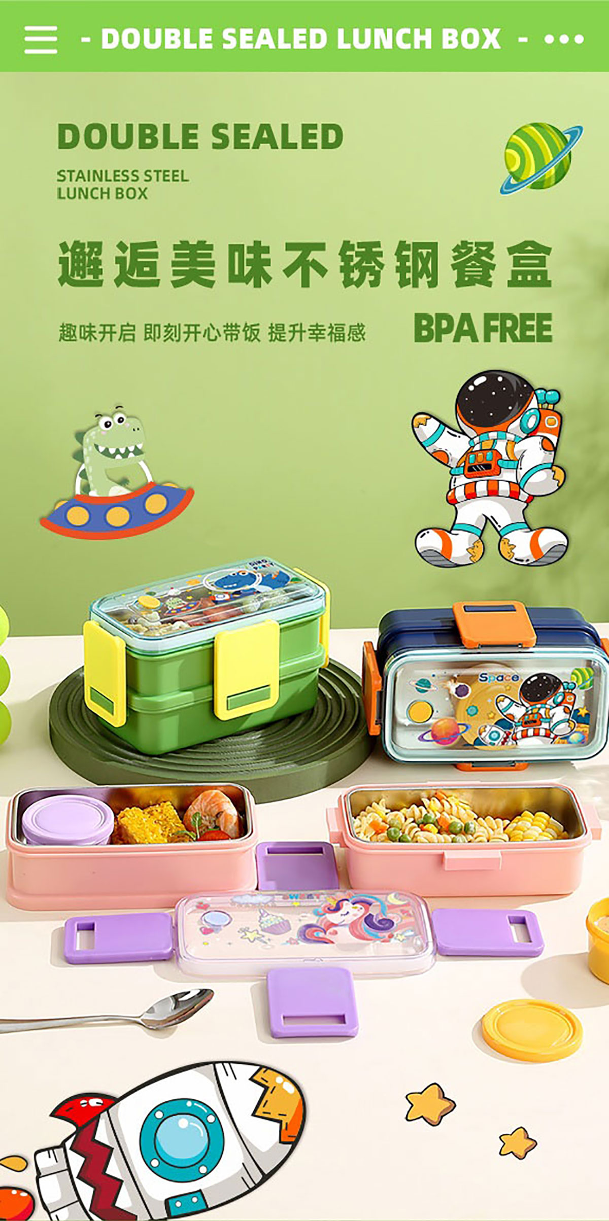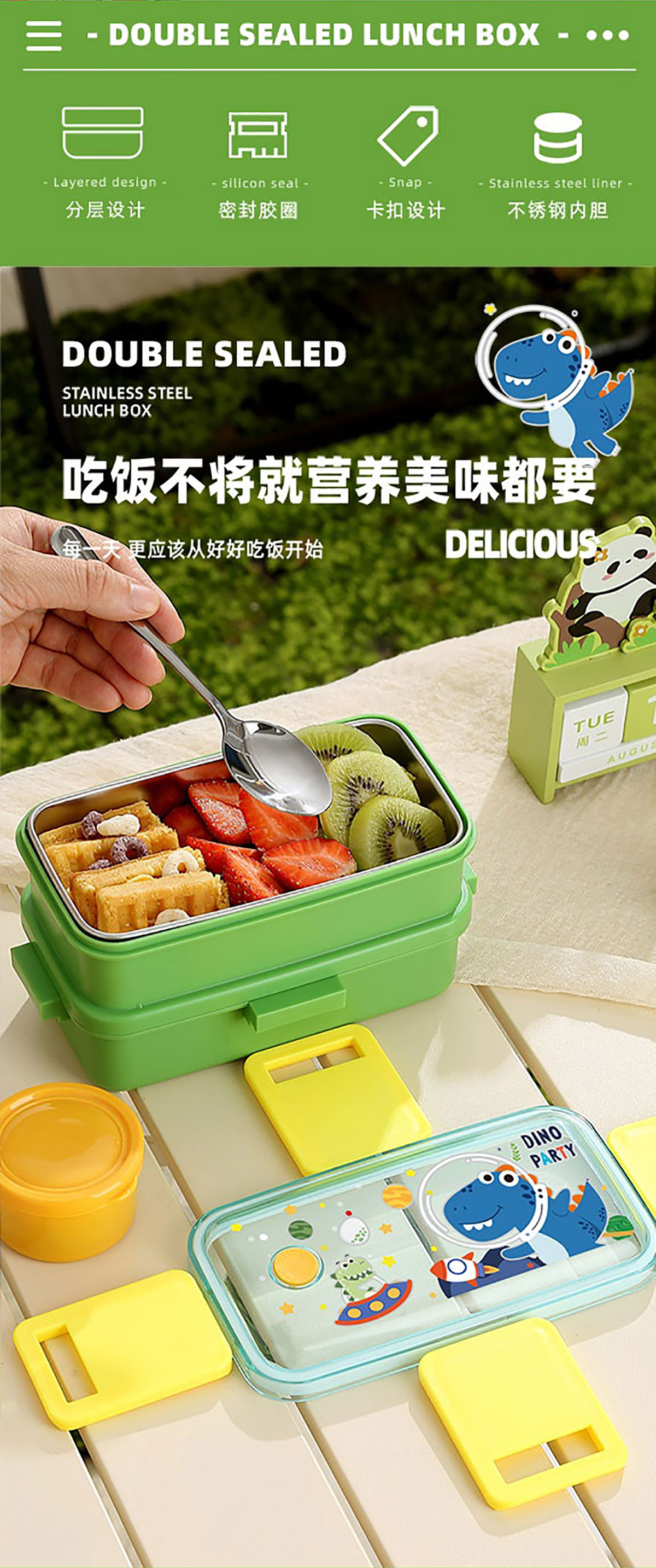 彩光卡通雙層不銹鋼餐盒(500mlx2+醬料杯80ml)