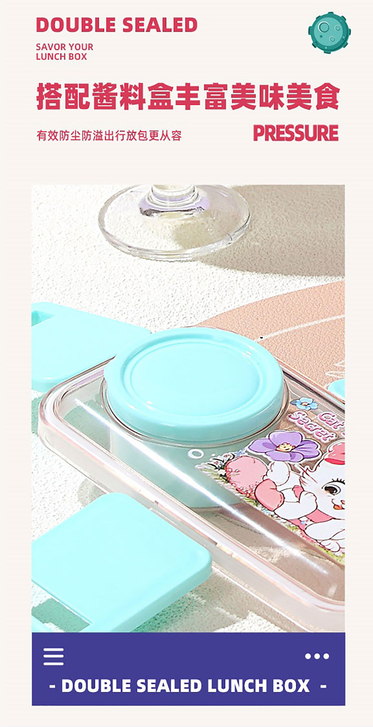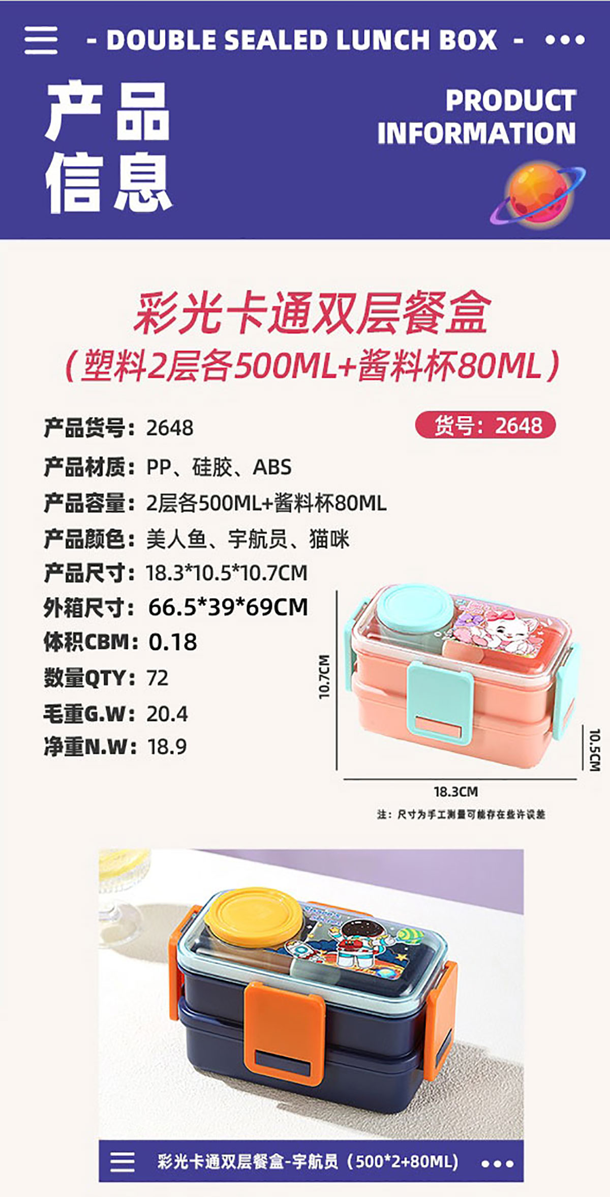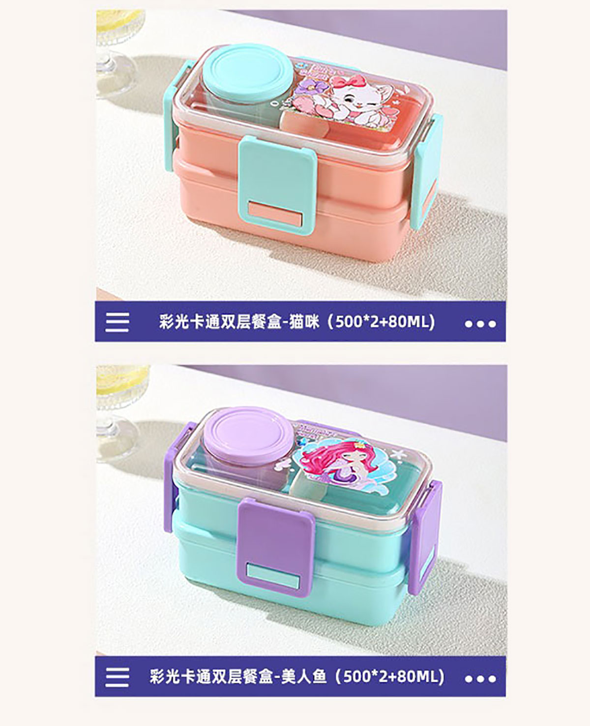彩光卡通雙層餐盒(500mlx2+外置醬料杯80ml)