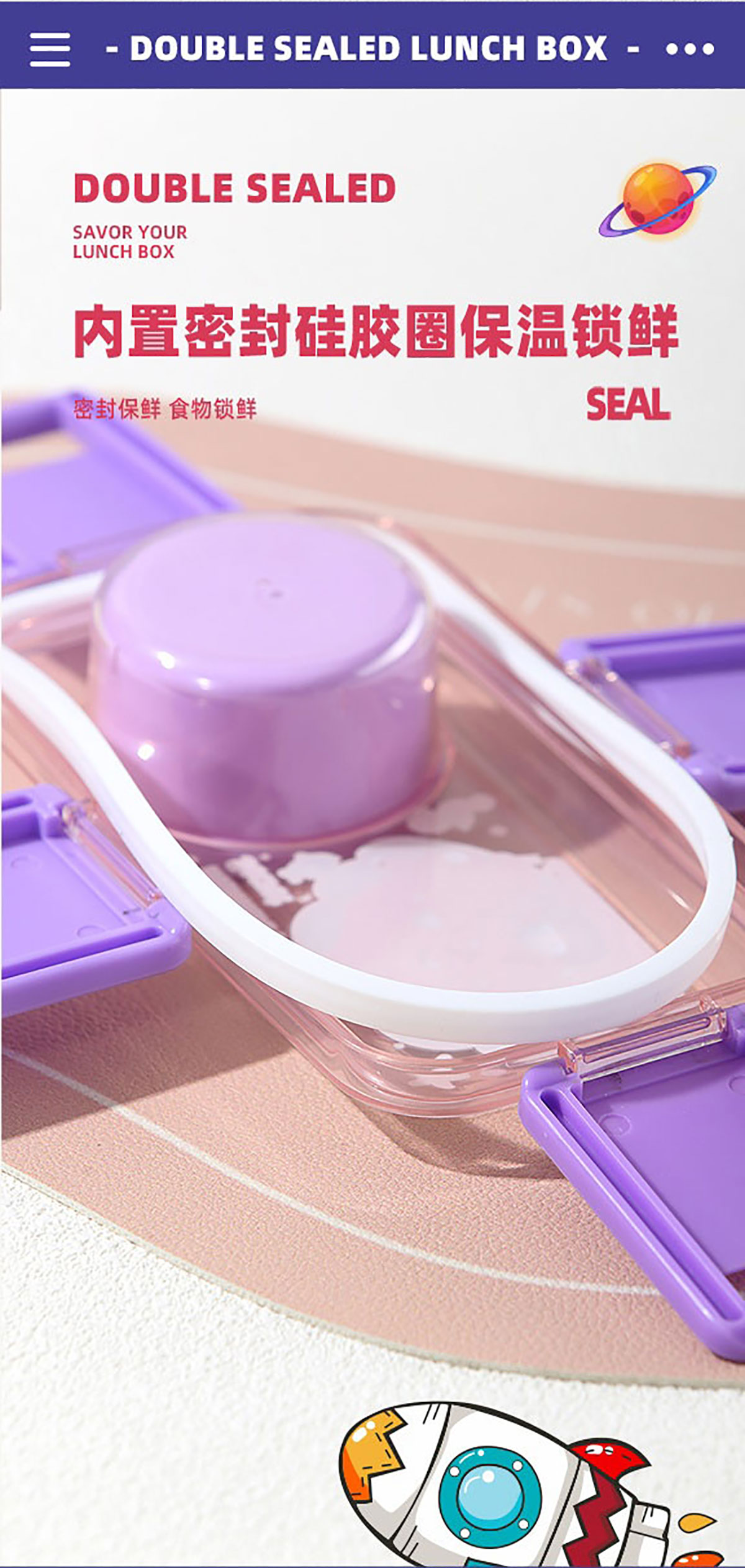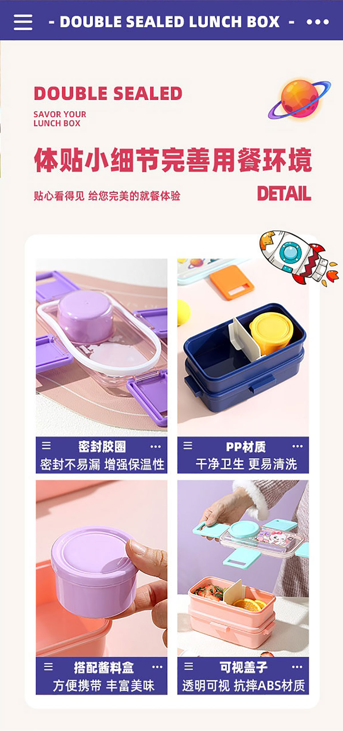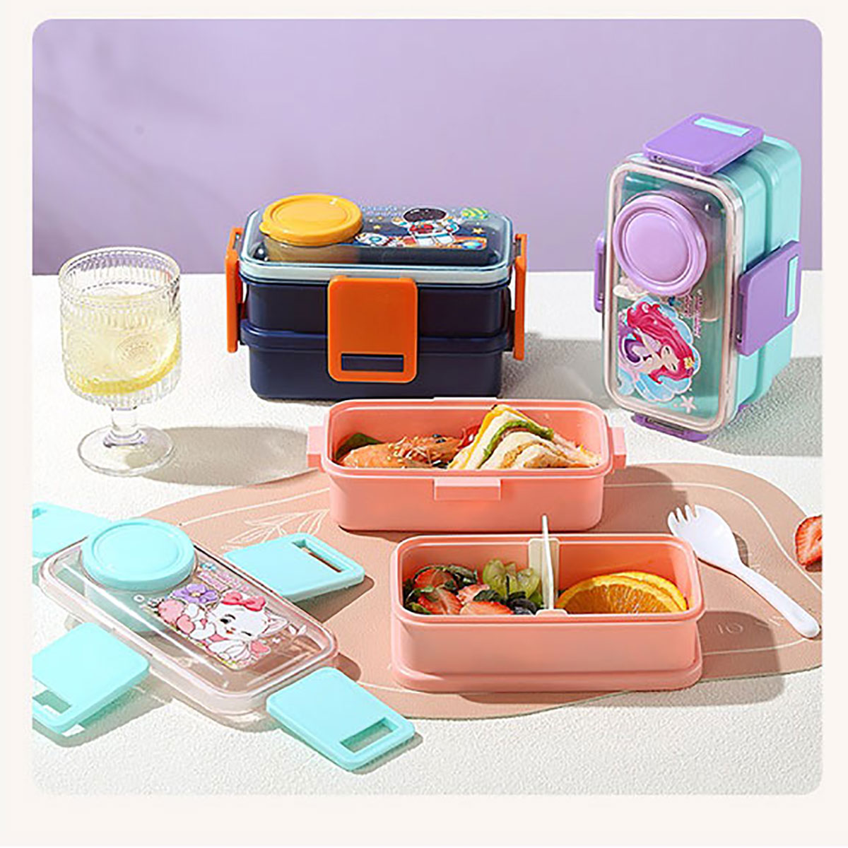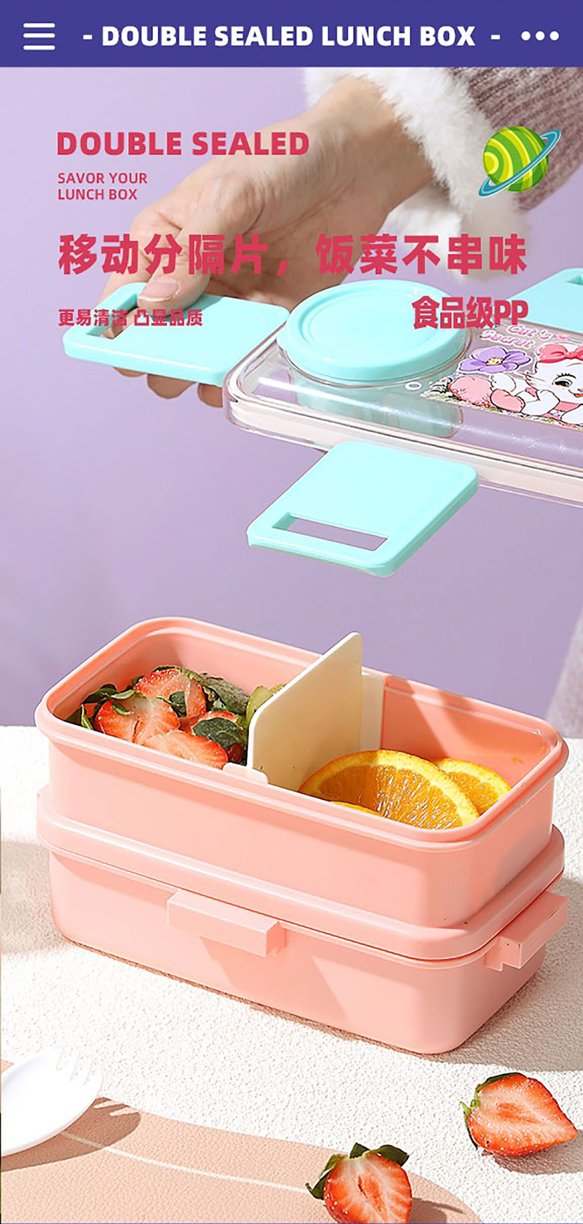 彩光卡通雙層餐盒(500mlx2+外置醬料杯80ml)