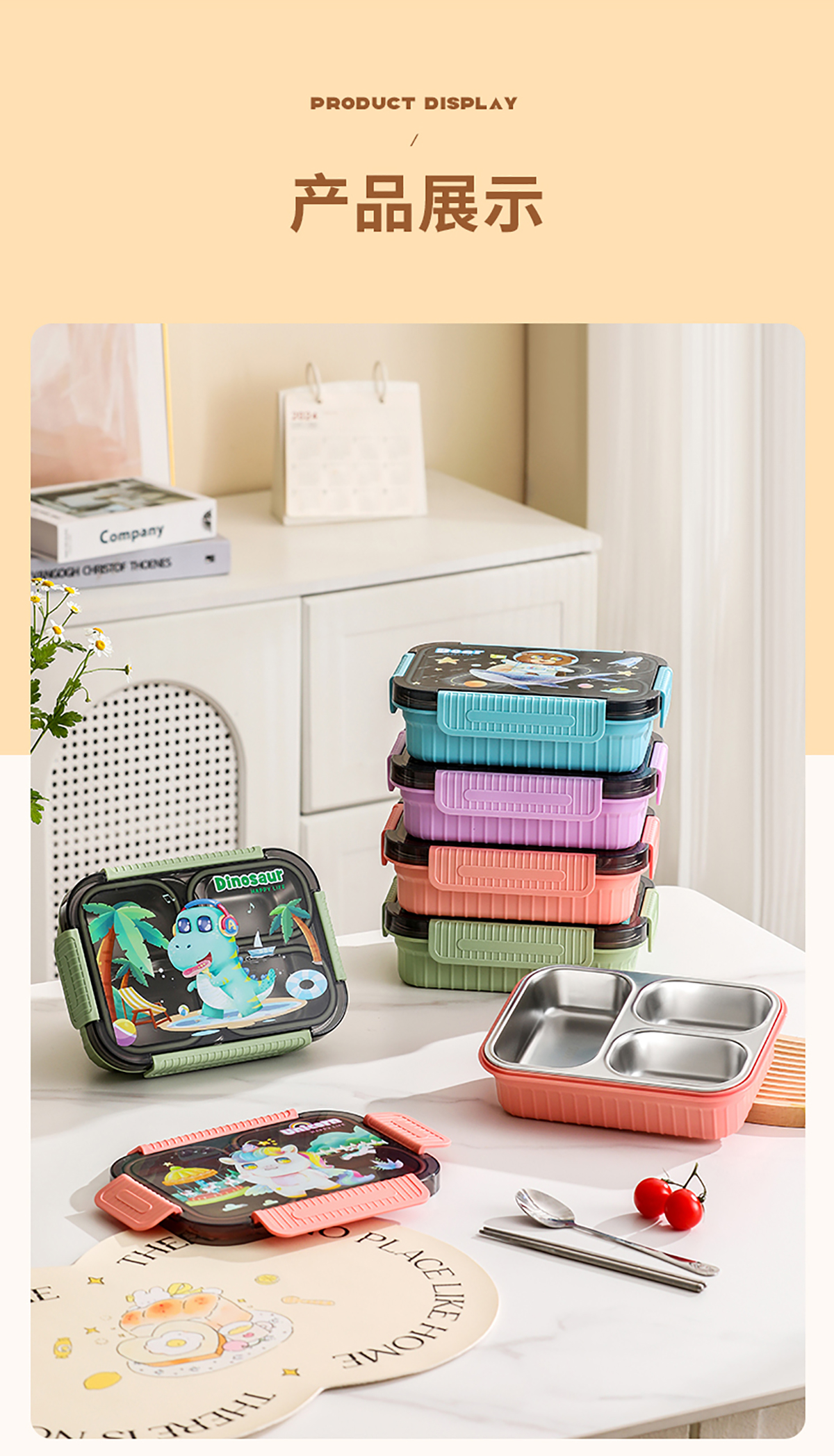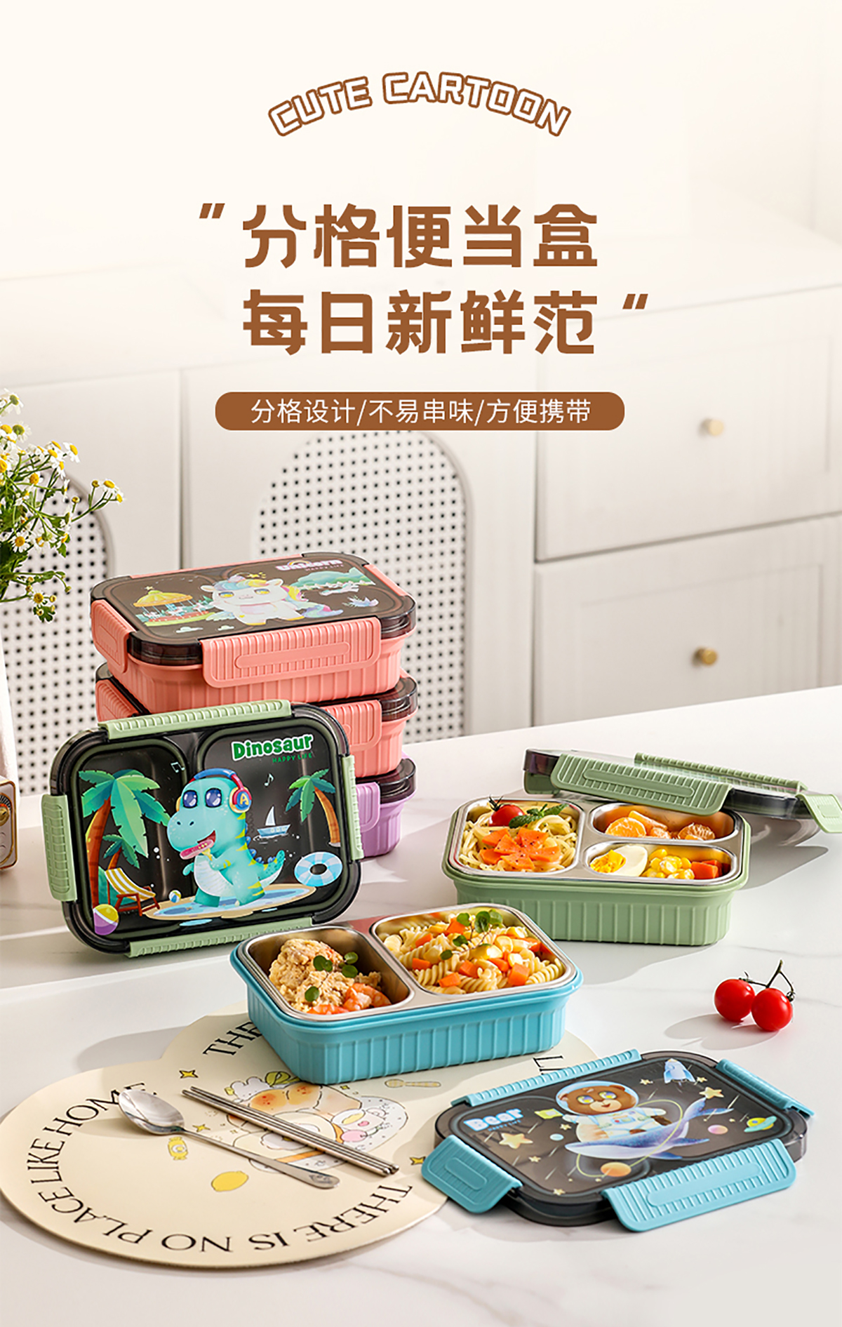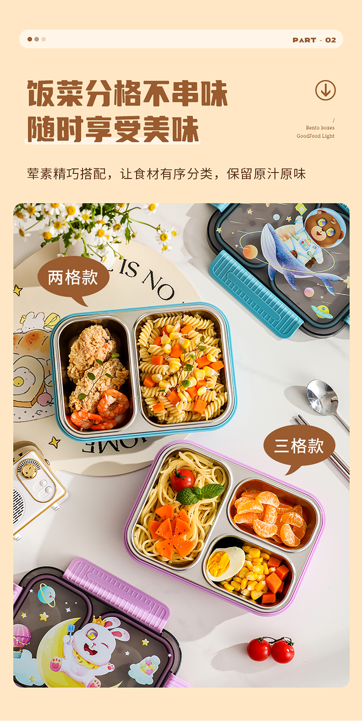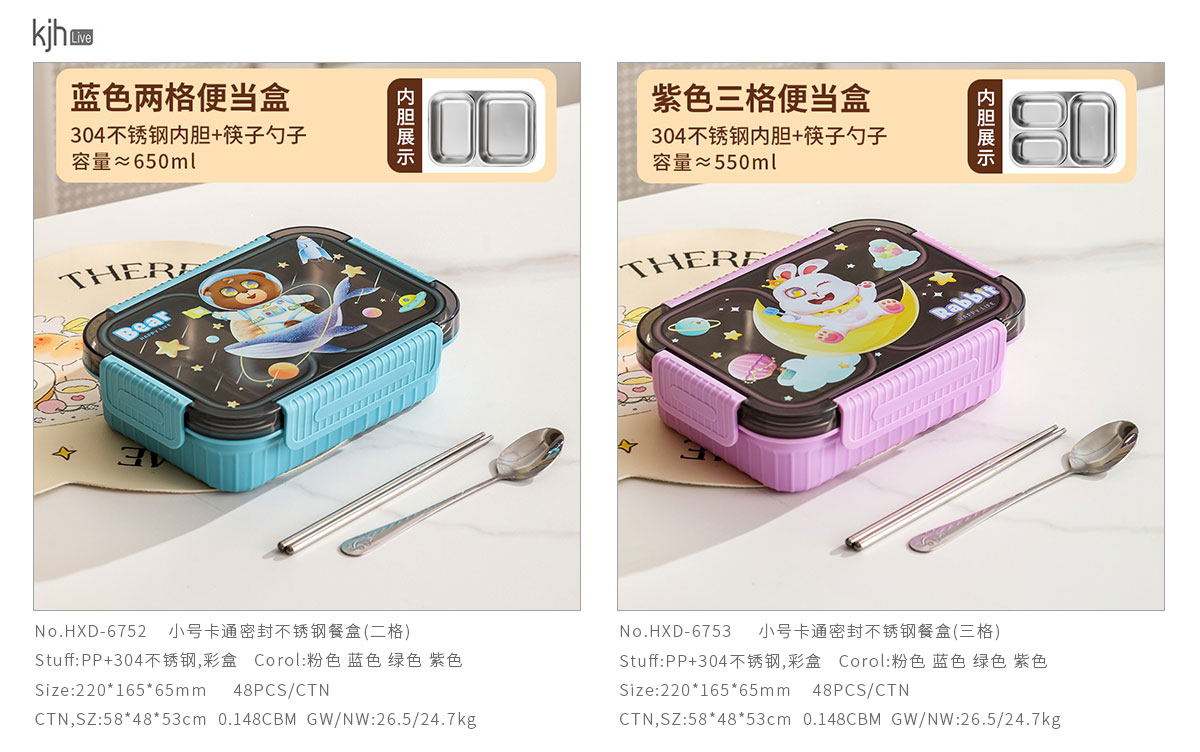小號卡通密封不銹鋼餐盒(二格/三格)