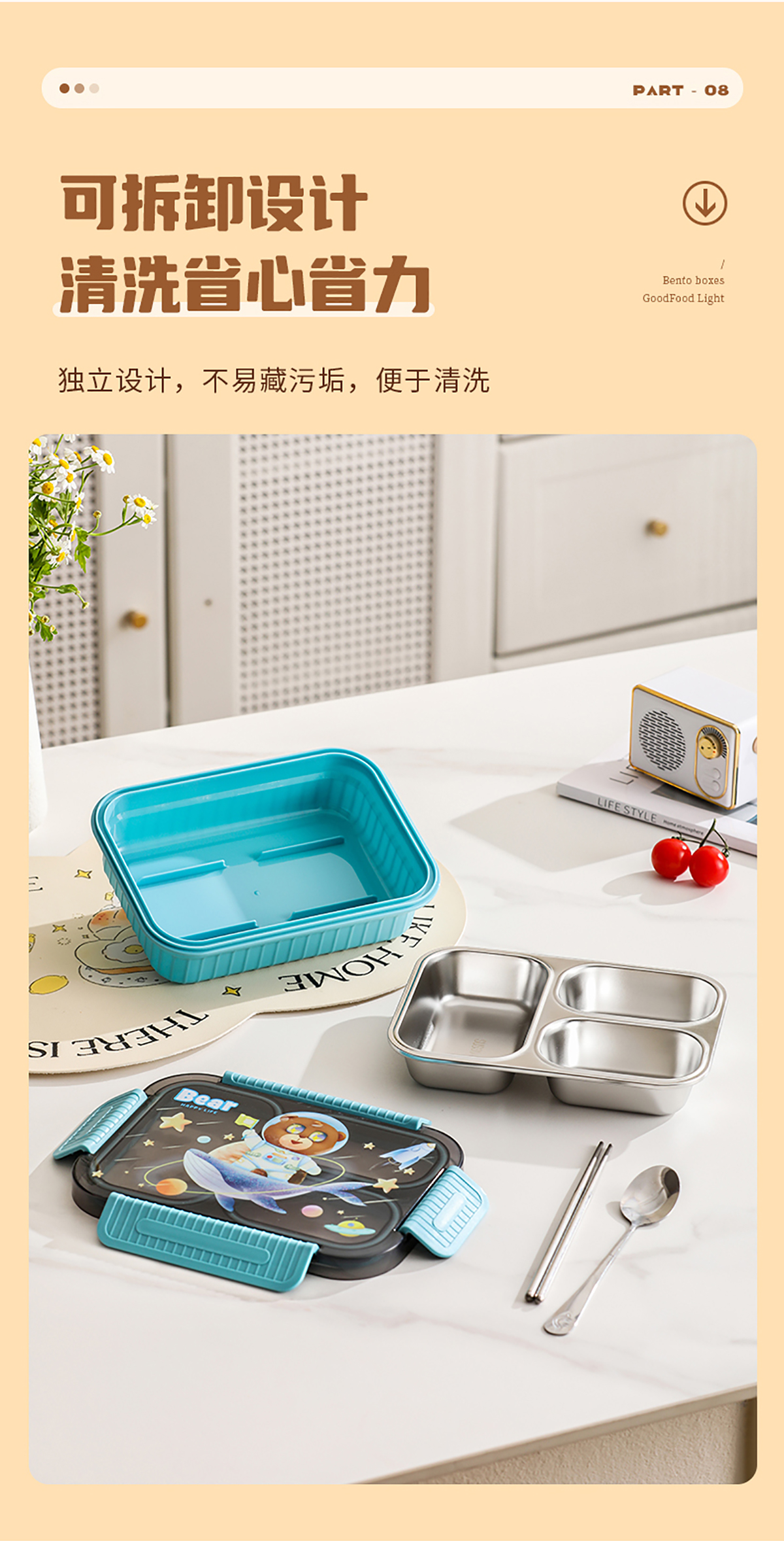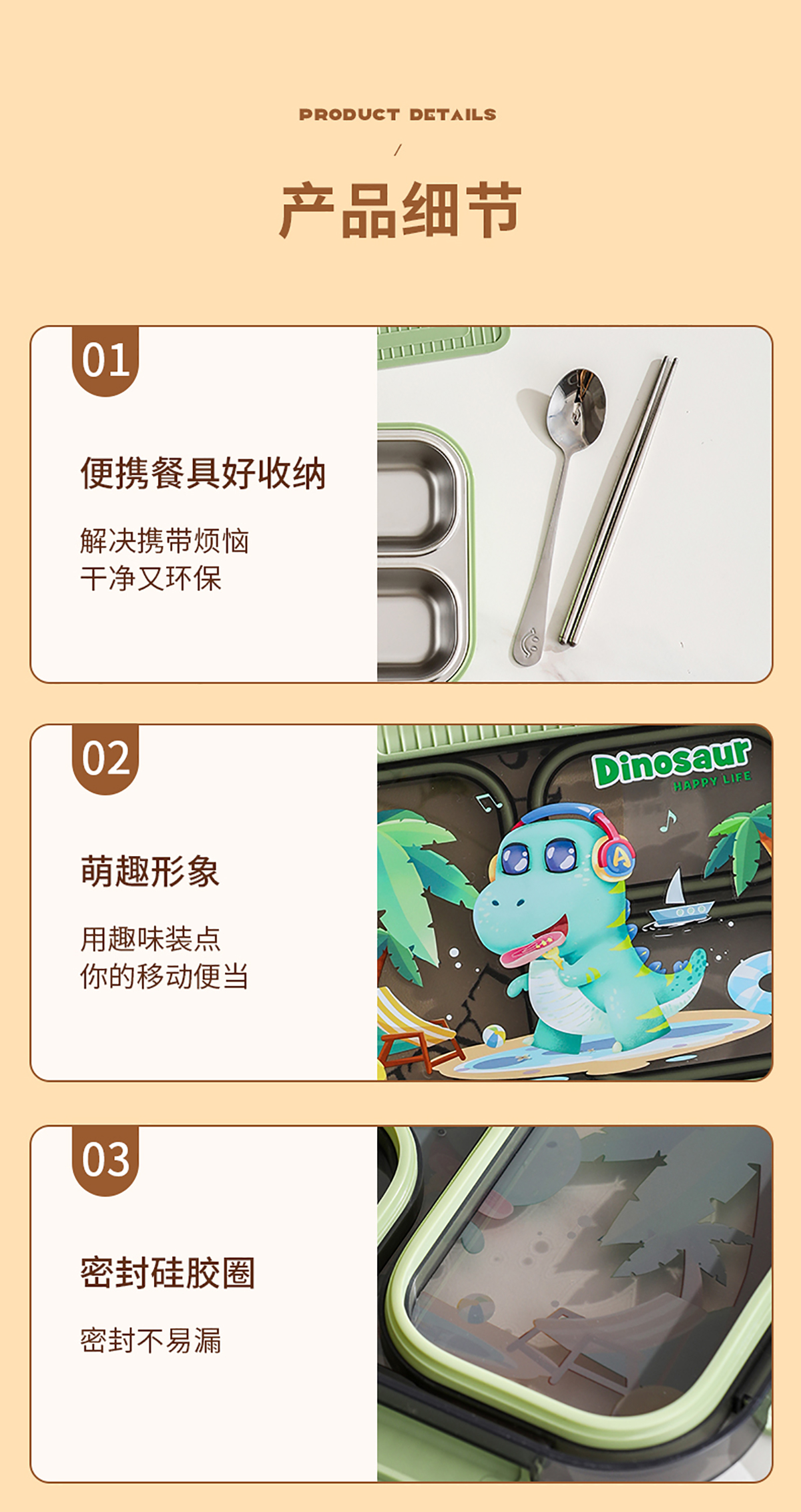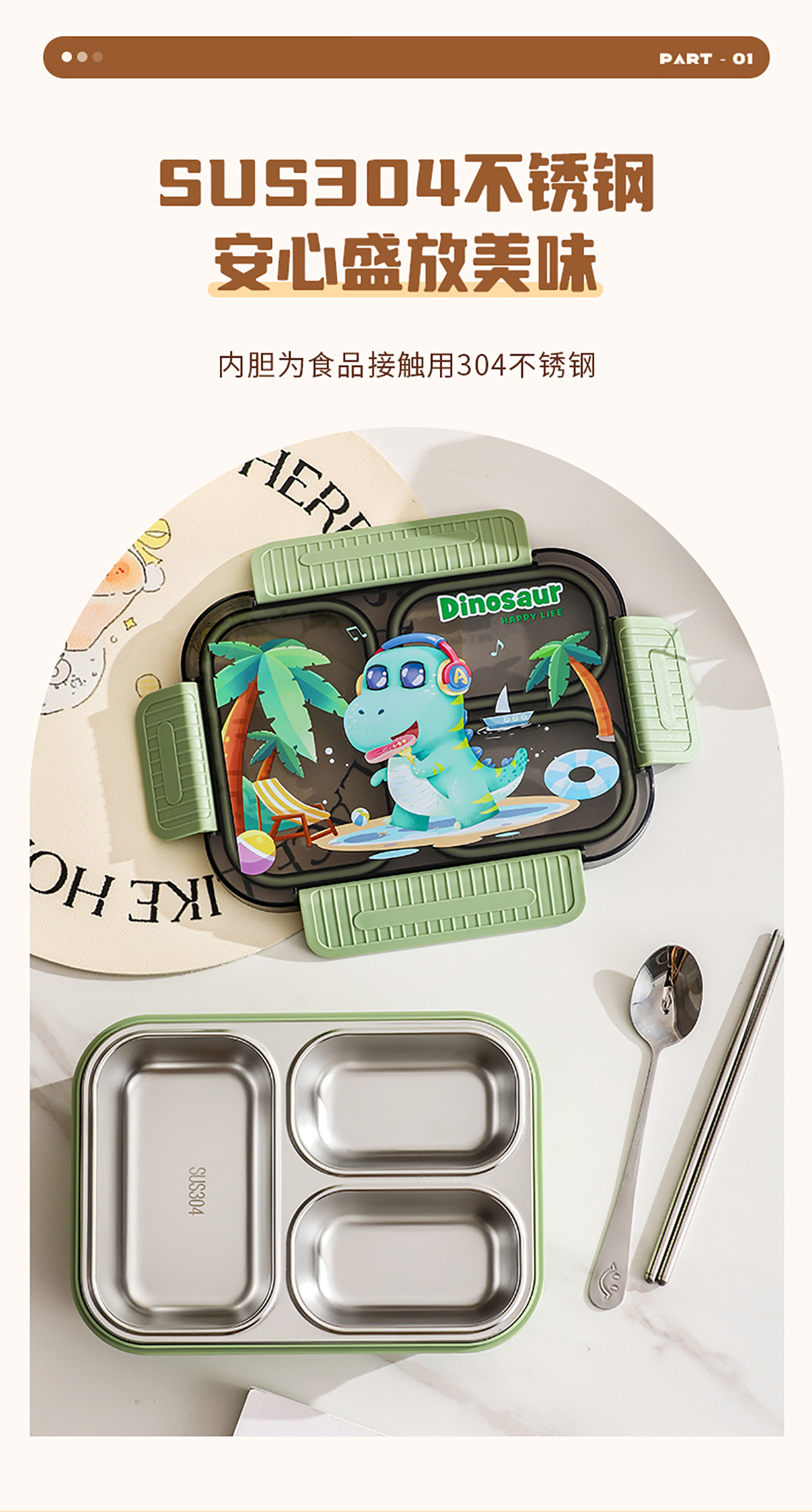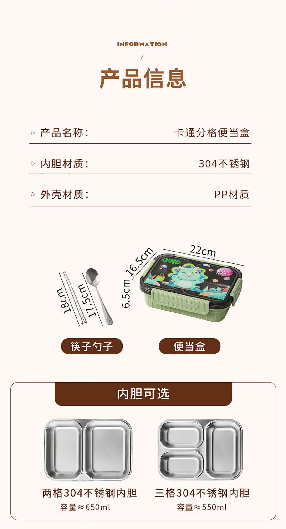 小號卡通密封不銹鋼餐盒(二格/三格)