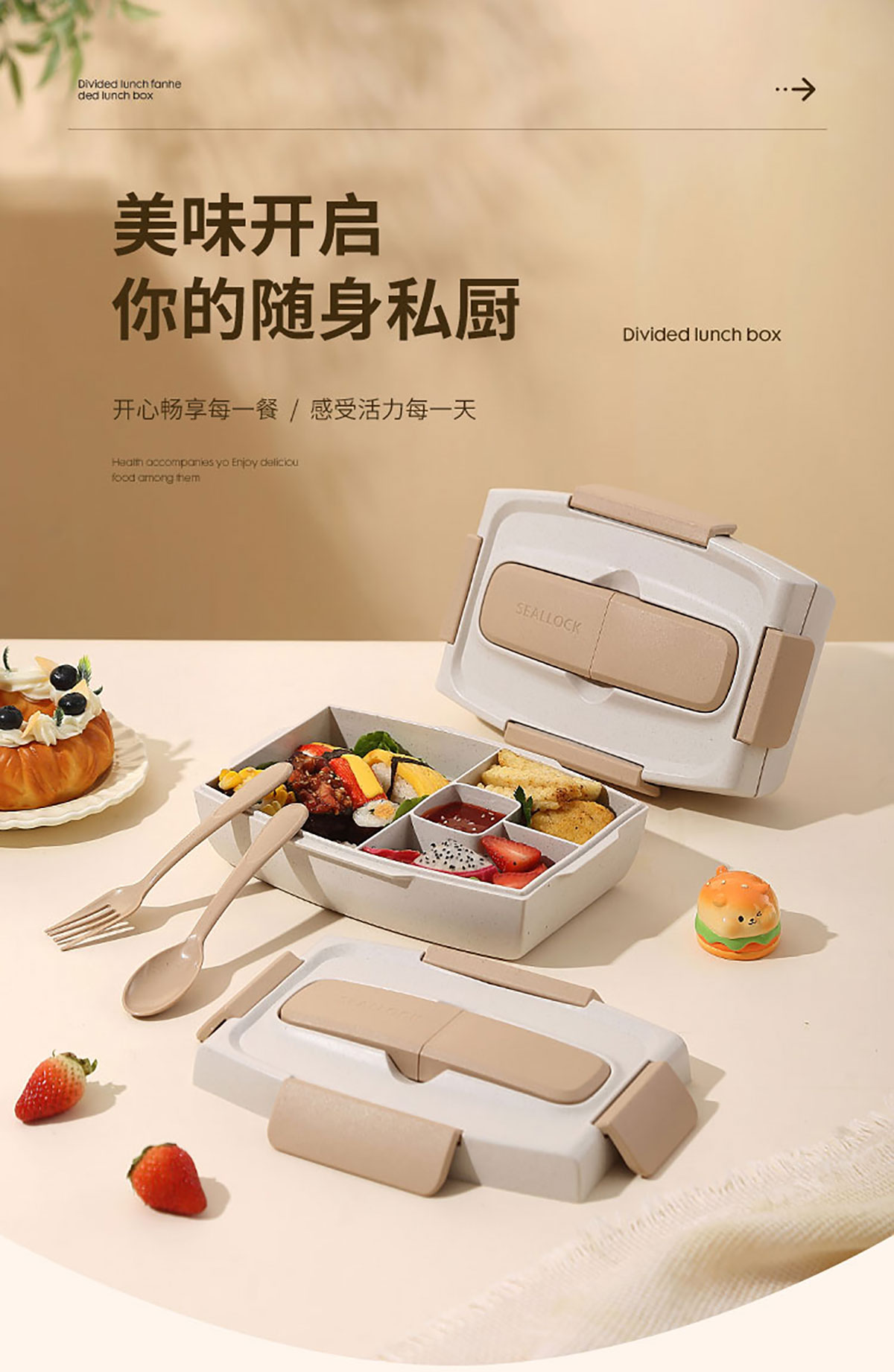 小麥款沙拉餐盒(四格分格密封)1100ml