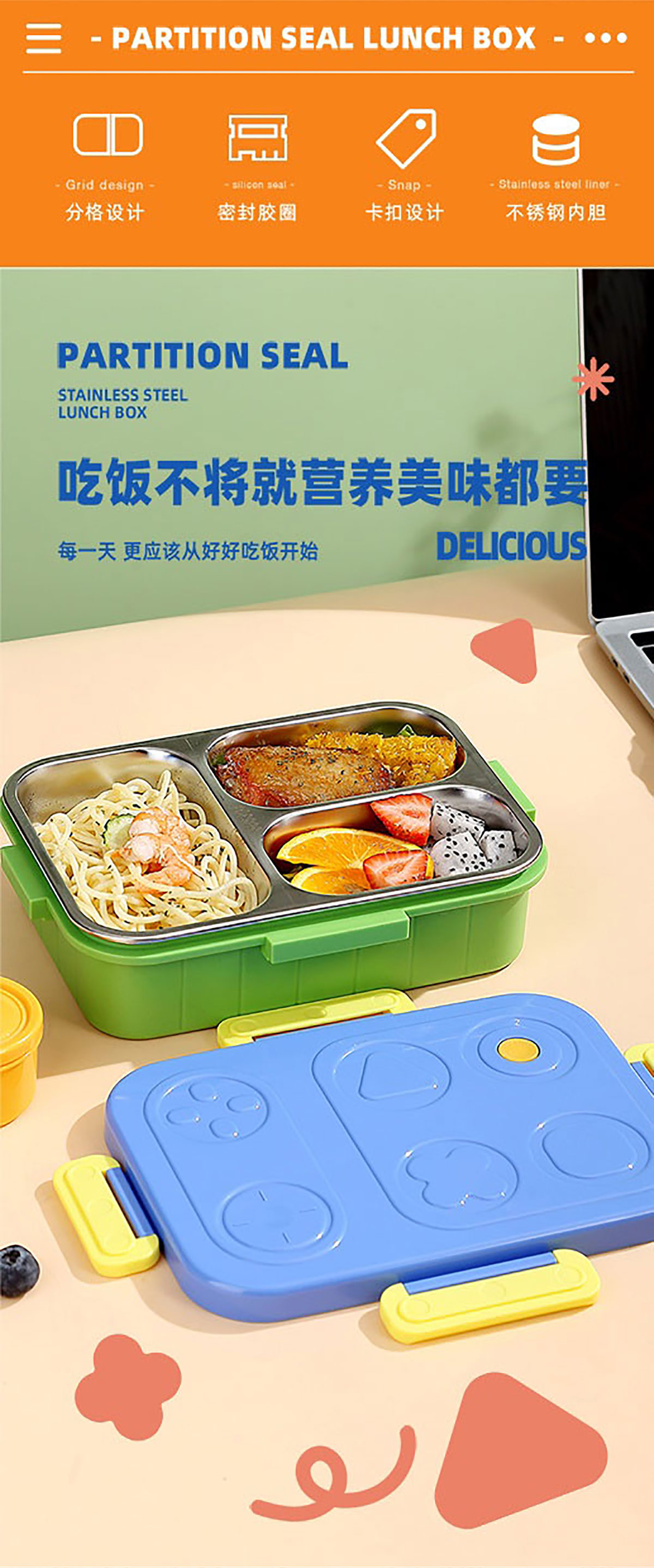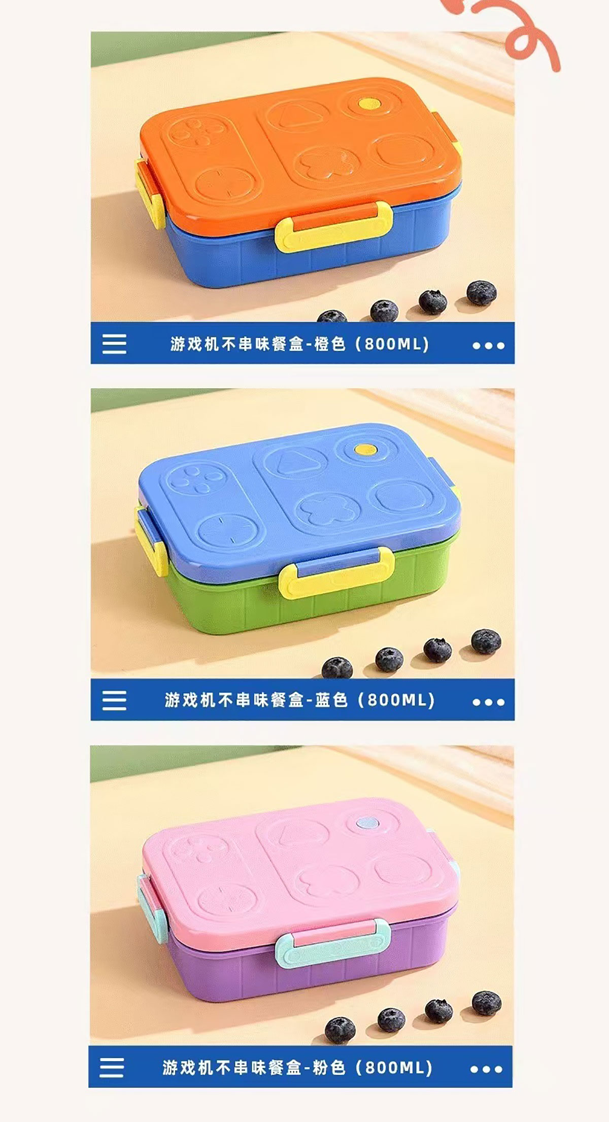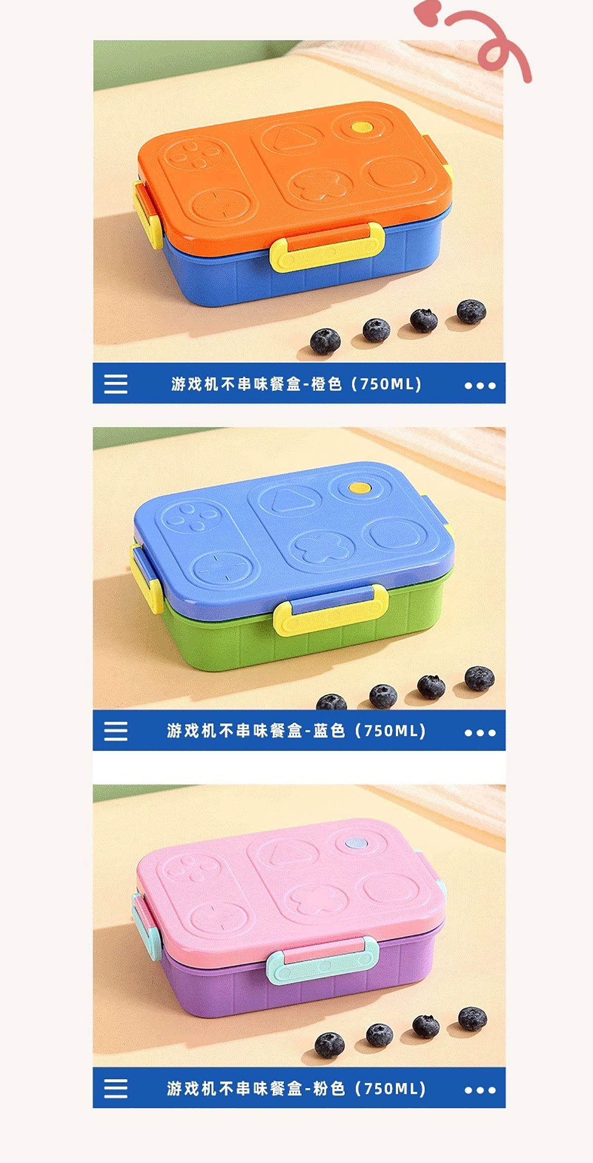 游戲機(jī)不串味餐盒(不銹鋼2格800ml/3格750ml+PP勺叉)