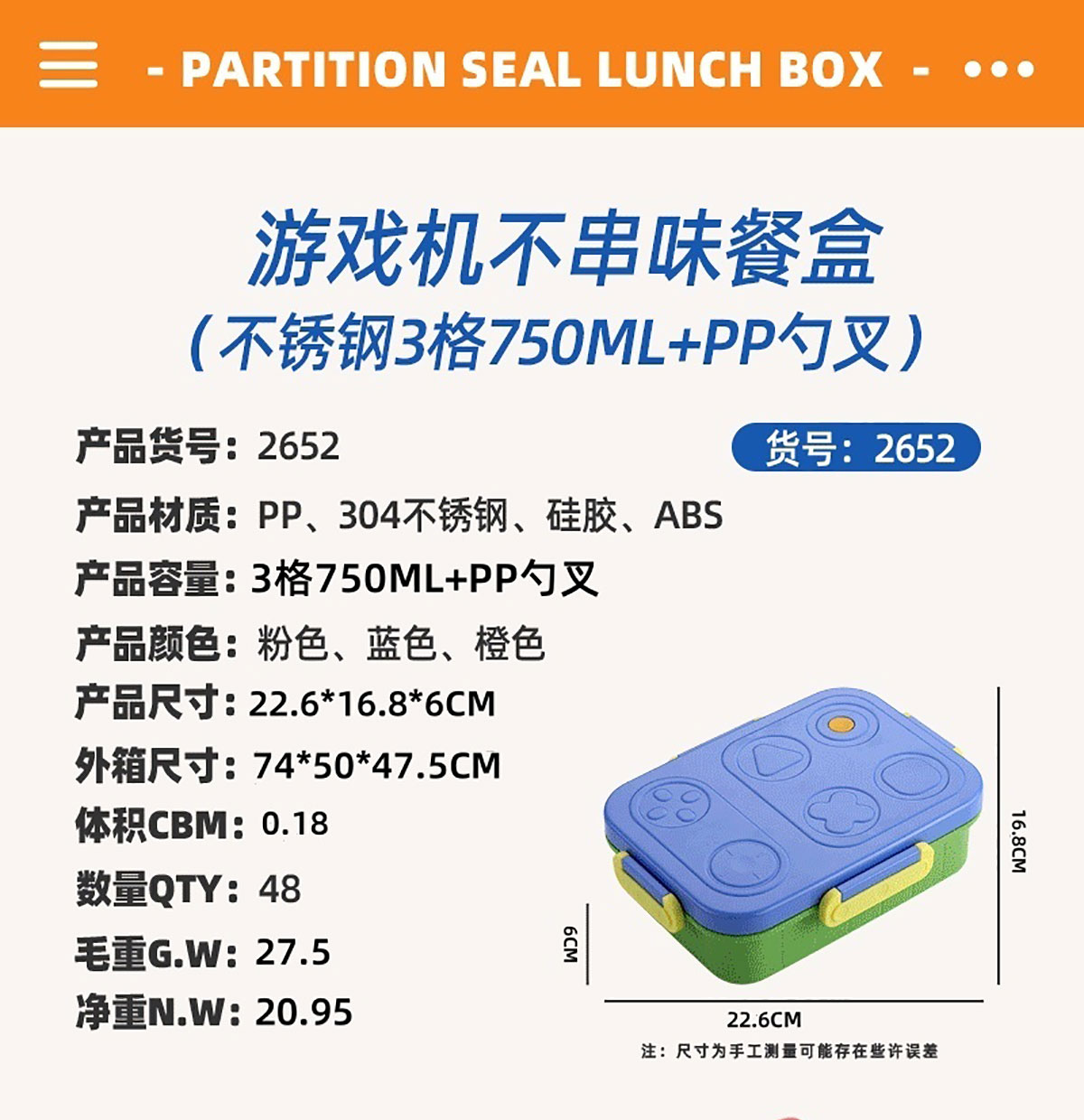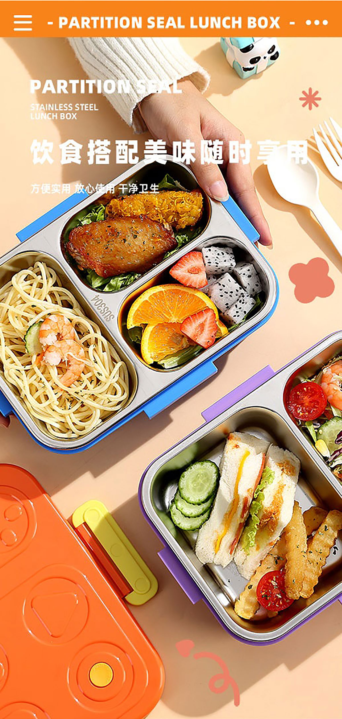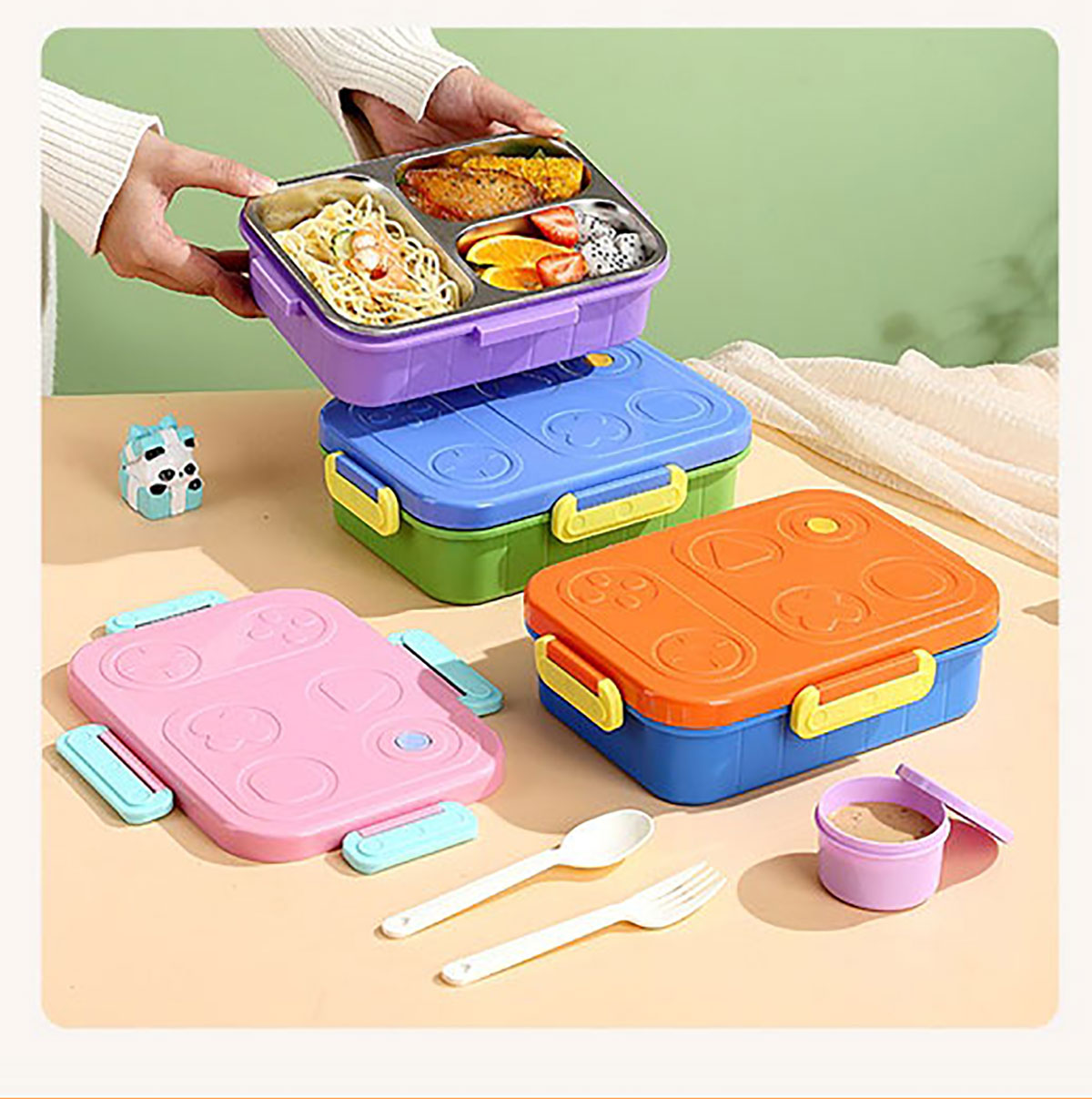 游戲機(jī)不串味餐盒(不銹鋼2格800ml/3格750ml+PP勺叉)