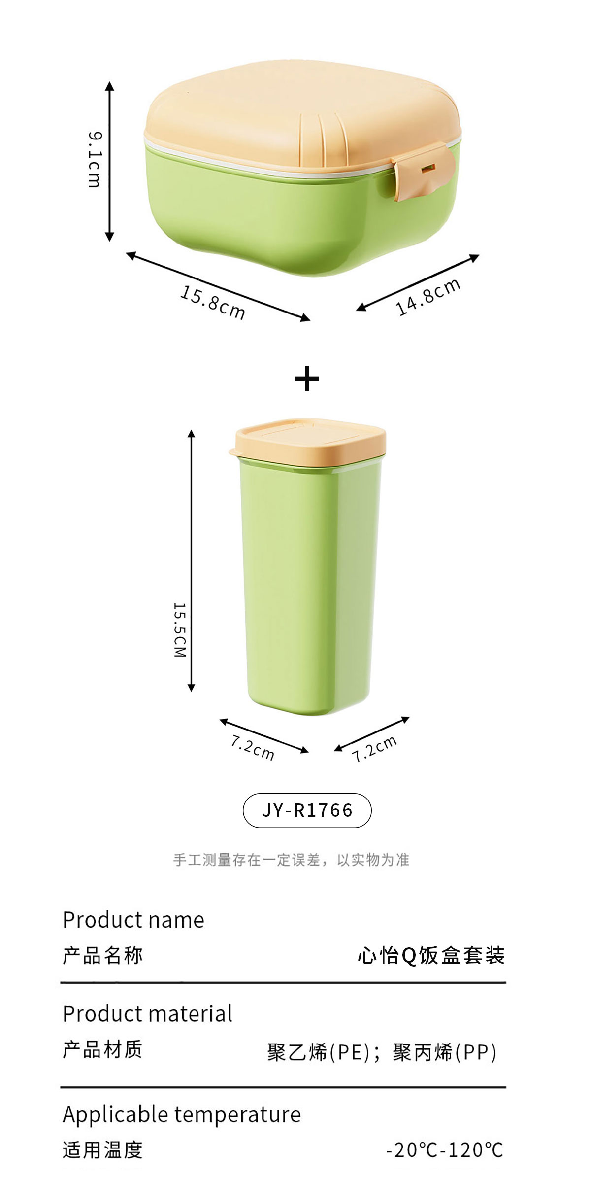 JY-R1766(套裝):飯盒:148*148*90mm/750ml 水杯:156*70*70mm/480ml