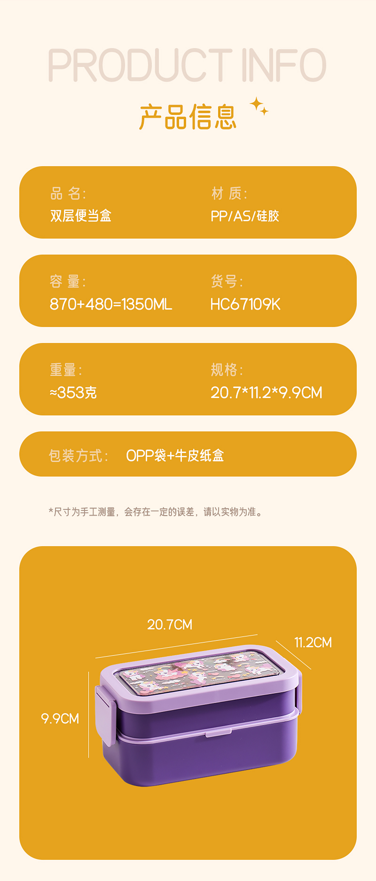 雙層便當(dāng)盒870+480=1350ml