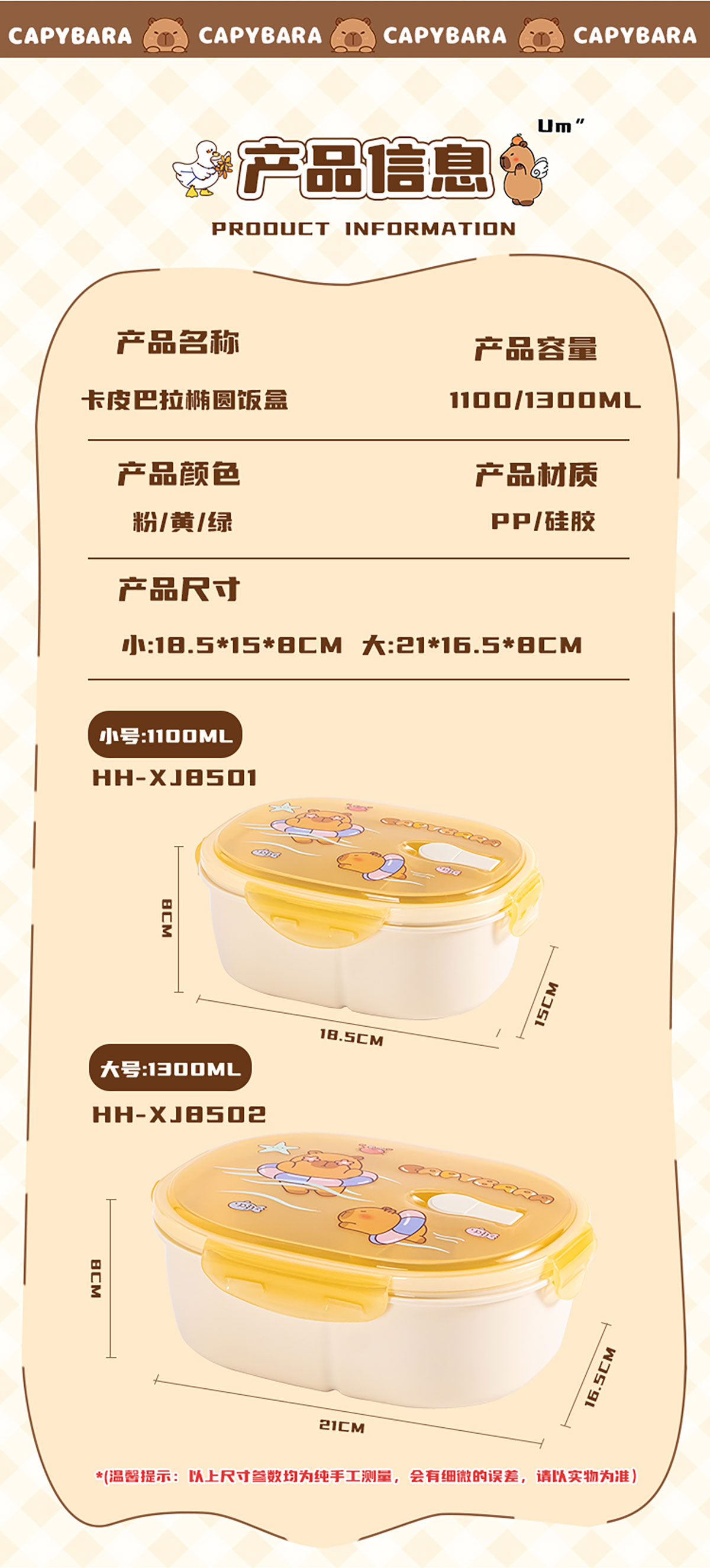 Size: HH-XJ8501(小號(hào)):192*152*80mm/1100ml
