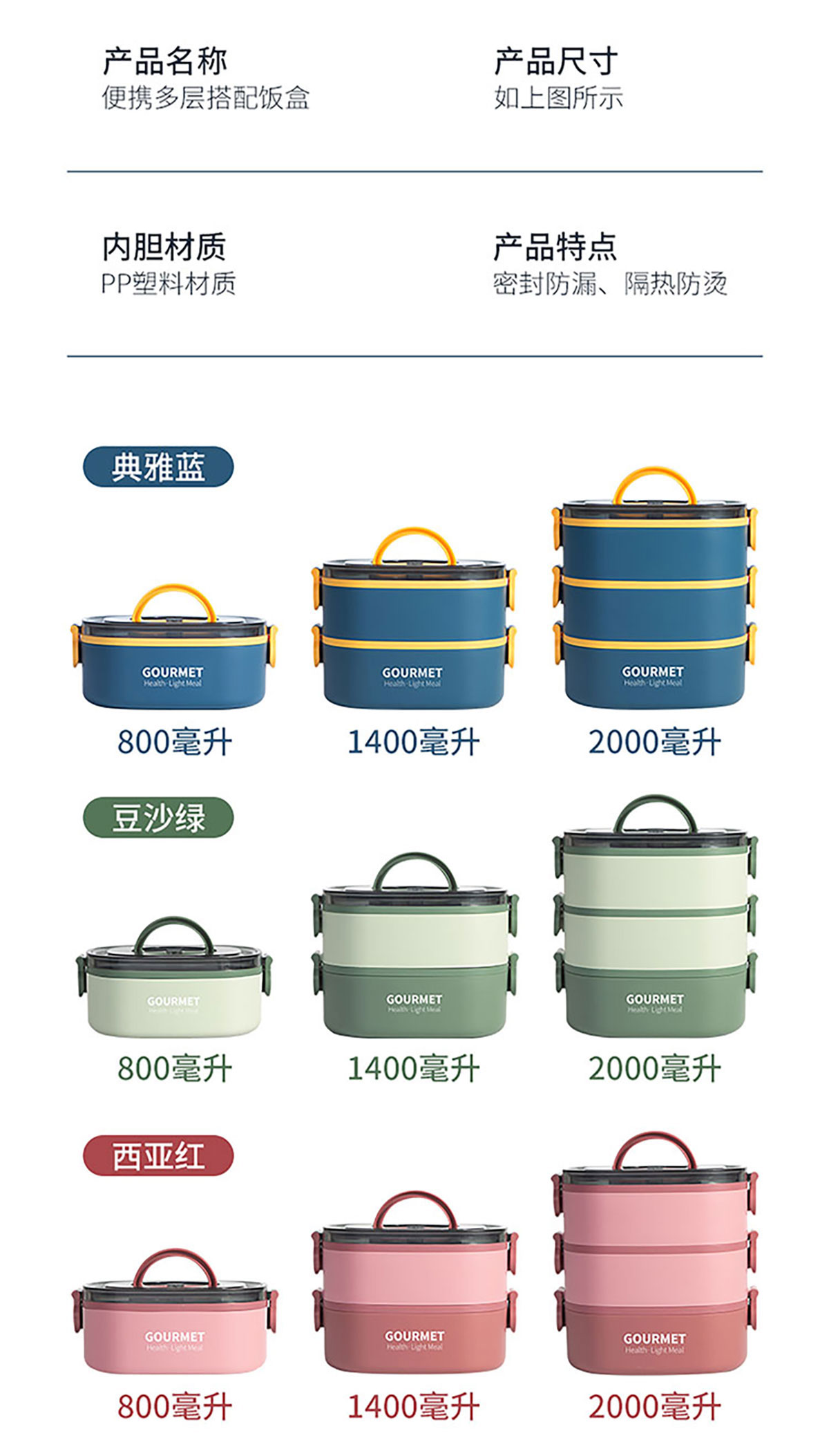 Size: SSY-A15(單層):195*140*76mm/800ml