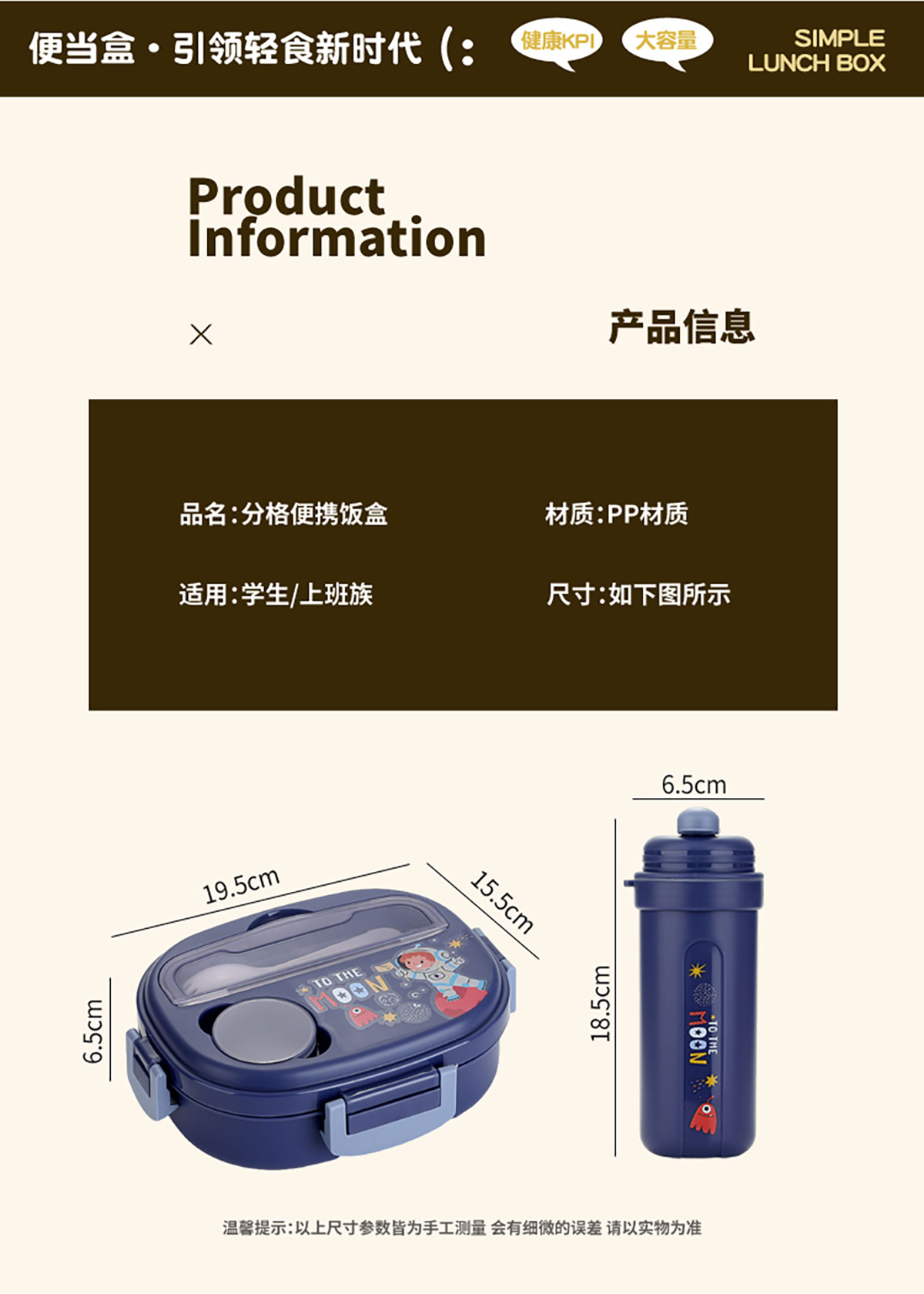 Size: 飯盒:195*155*65mm 水壺:65*185mm