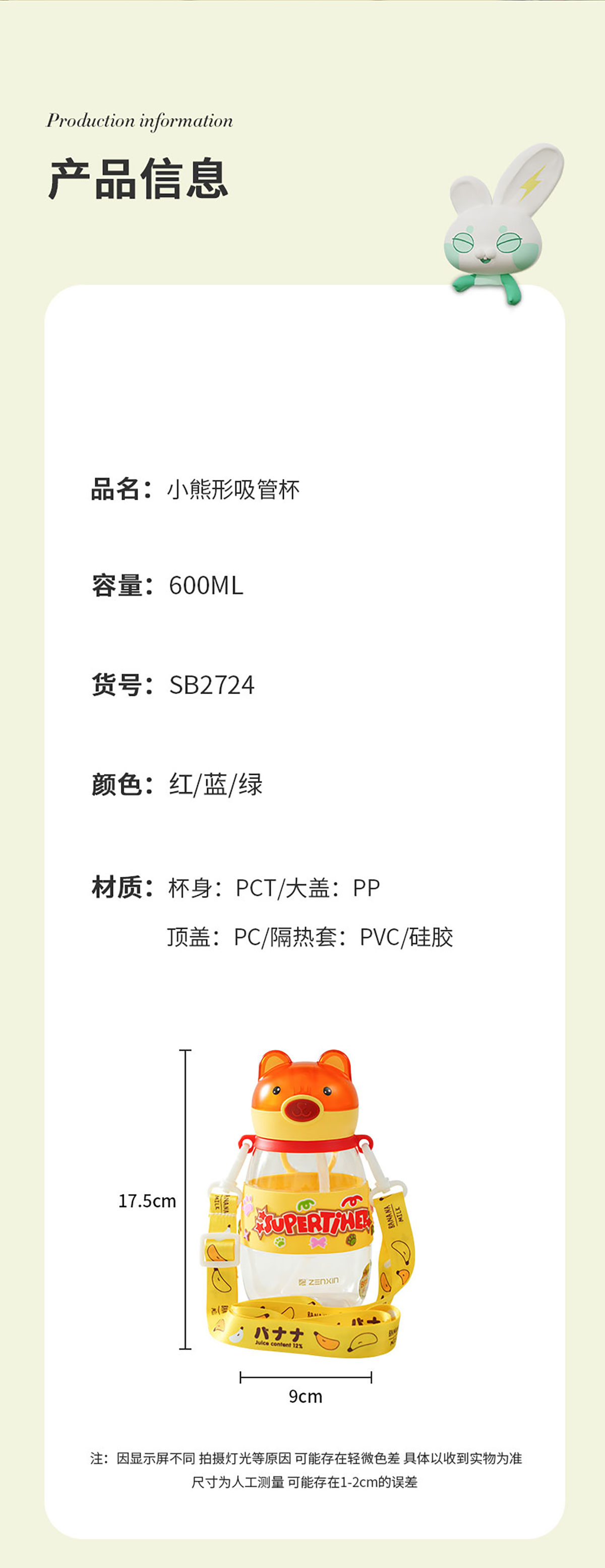 小熊形吸管杯(600ml) 彩盒裝/OPP裝