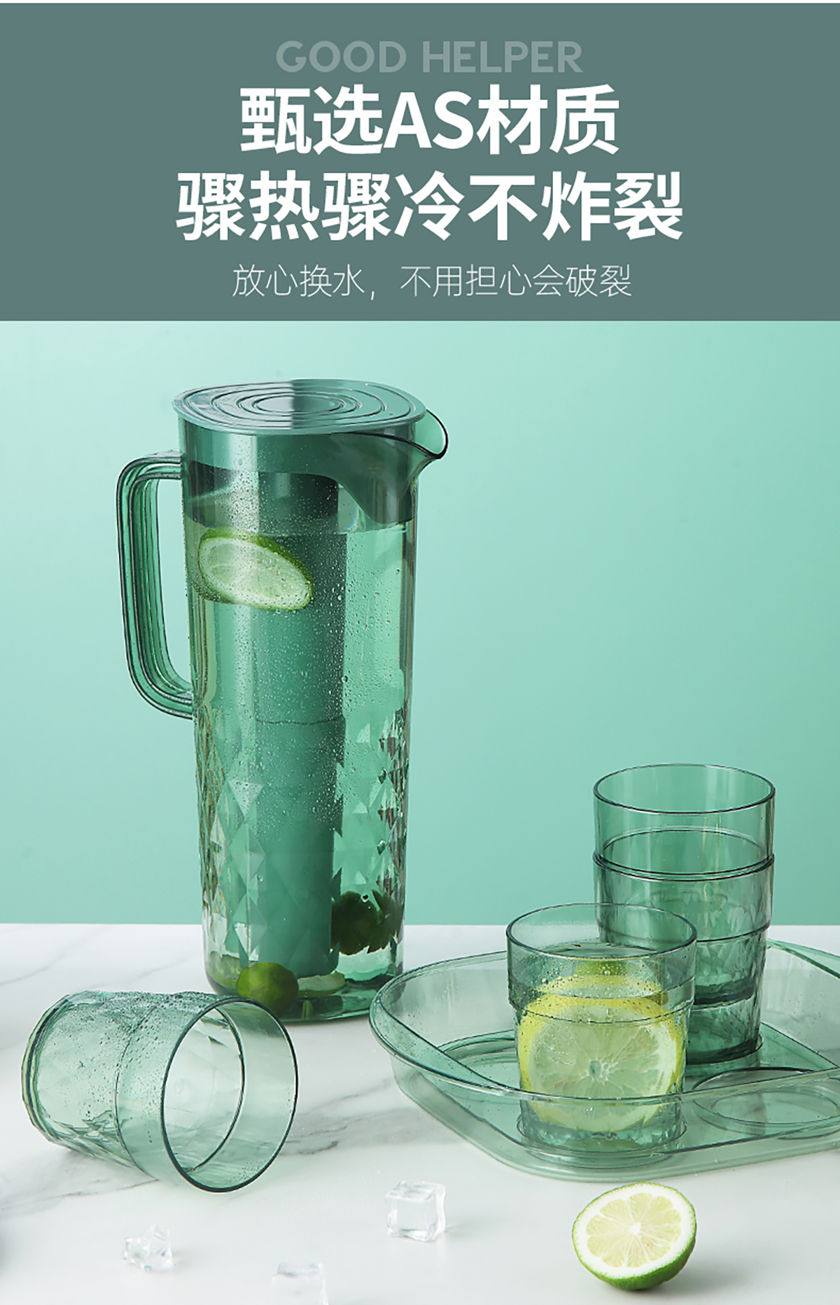Stuff:壺杯AS+蓋PP+冰棒ABS+托盤(pán)PET/OPP/彩盒